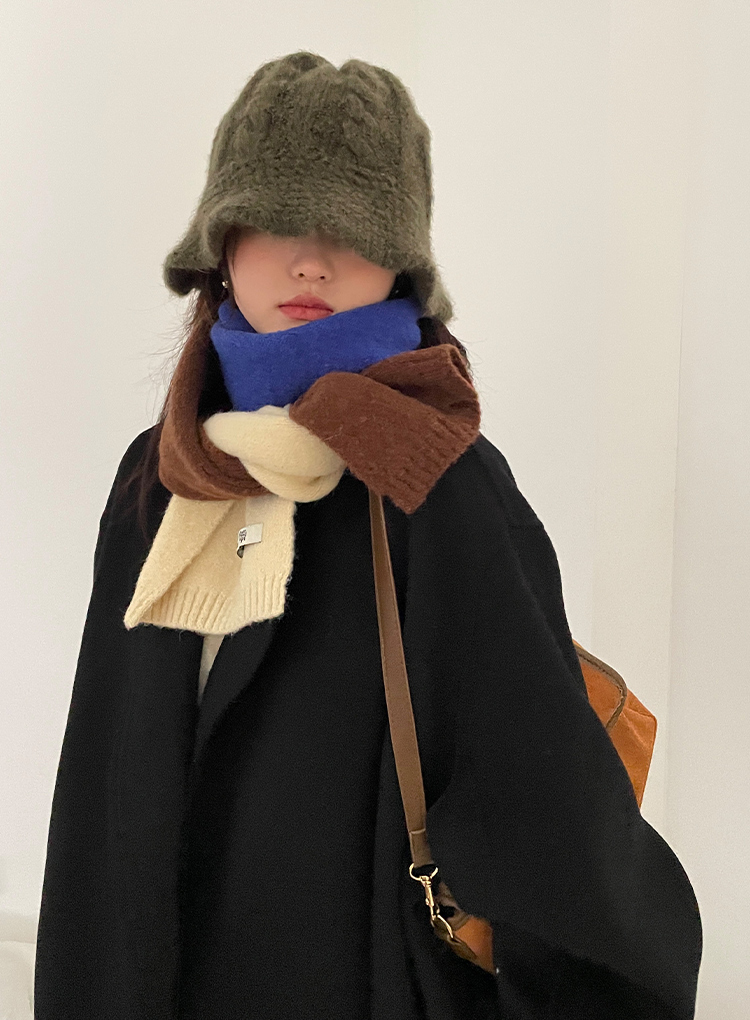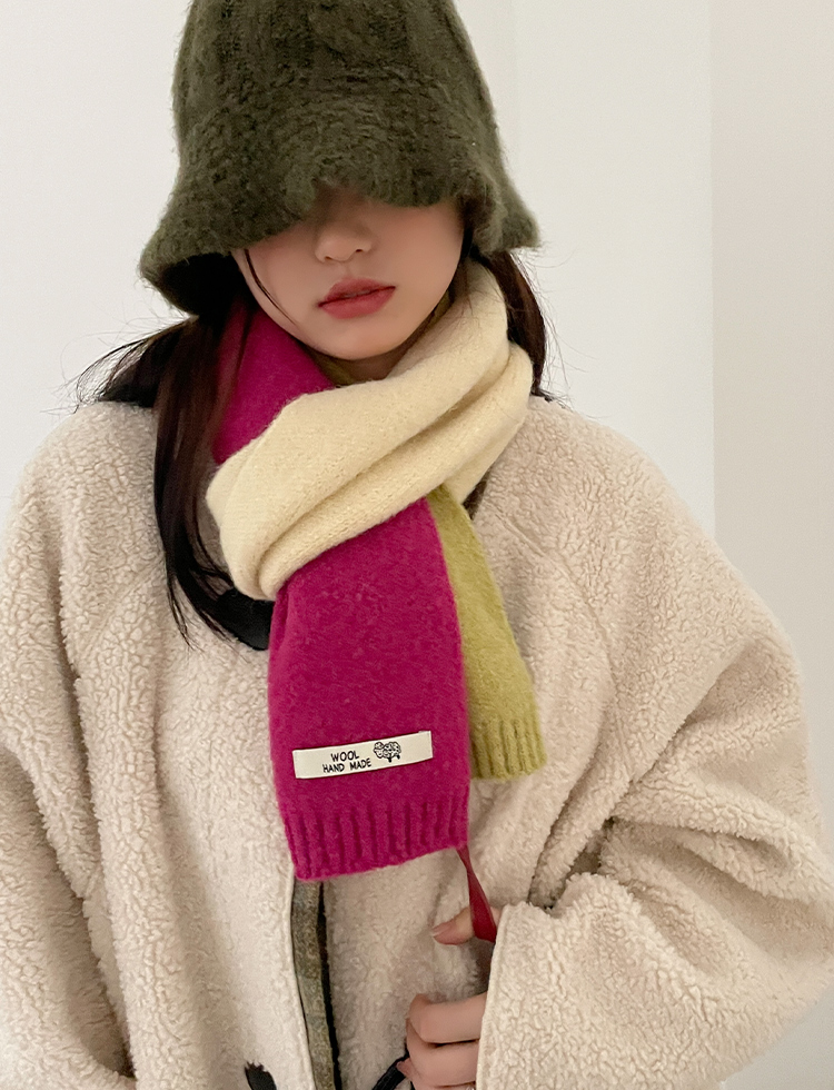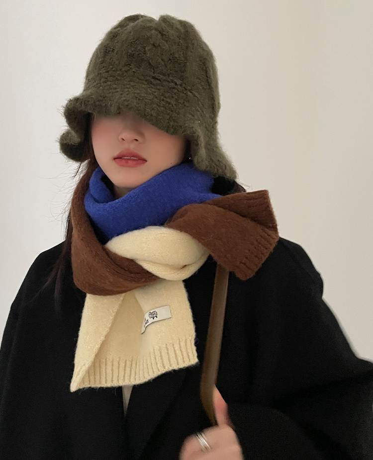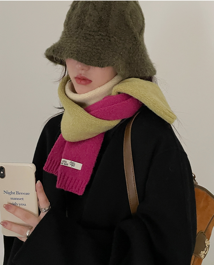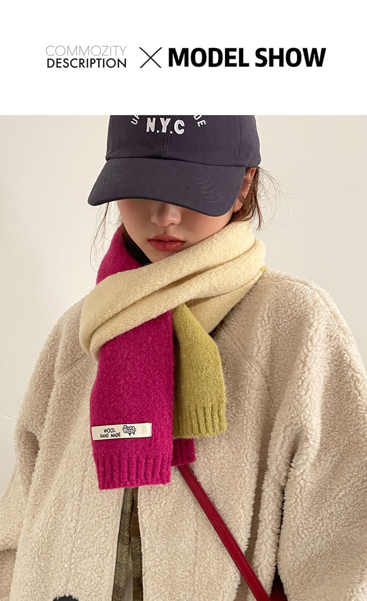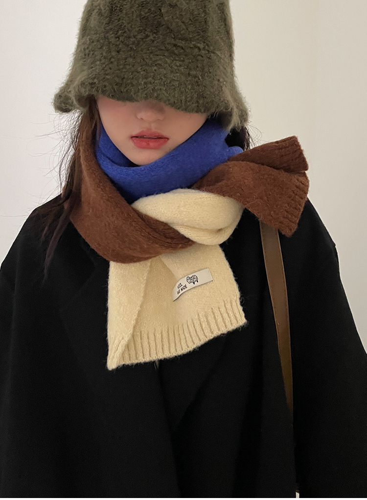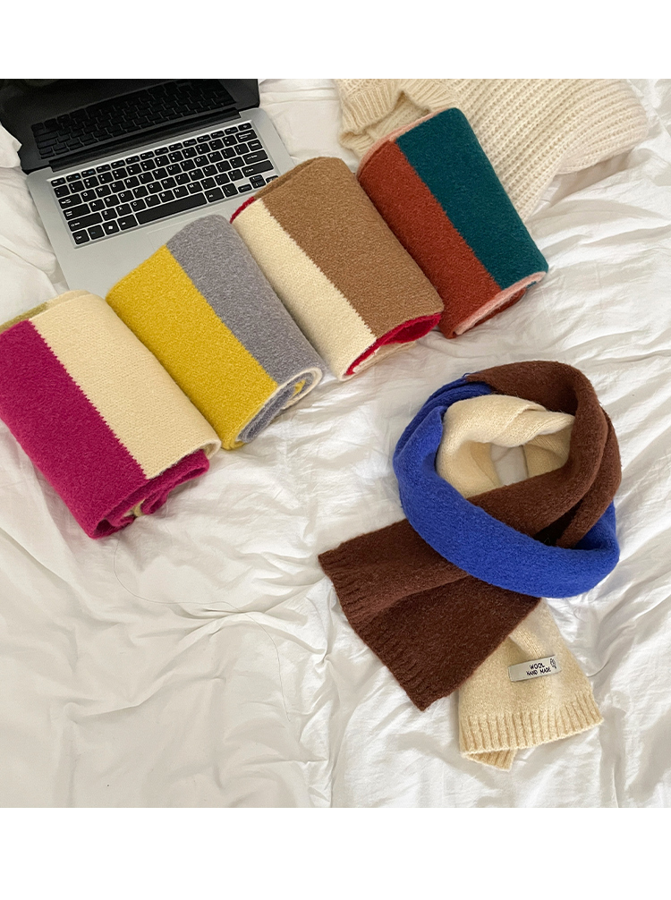 컬러 매칭 울 니트 스카프 여성용 겨울 인 스타일 한국 스타일 모든 매치 따뜻한 일본식 학생 겨울 스카프 패션스토어 가기