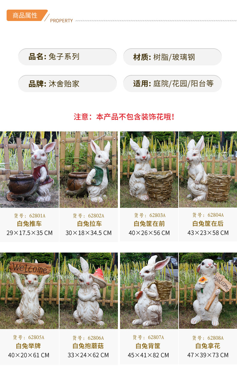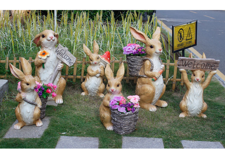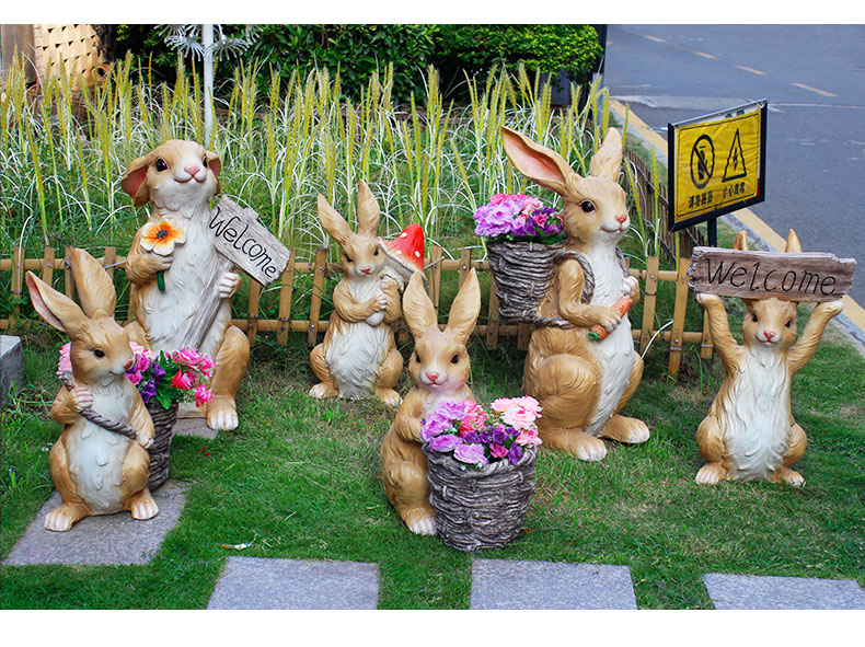 국경을 넘는 만화 토끼 장식품, 빌라 정원 장식 화분, 야외 시뮬레이션 동물 조각품, 정원 조경스토어 가기