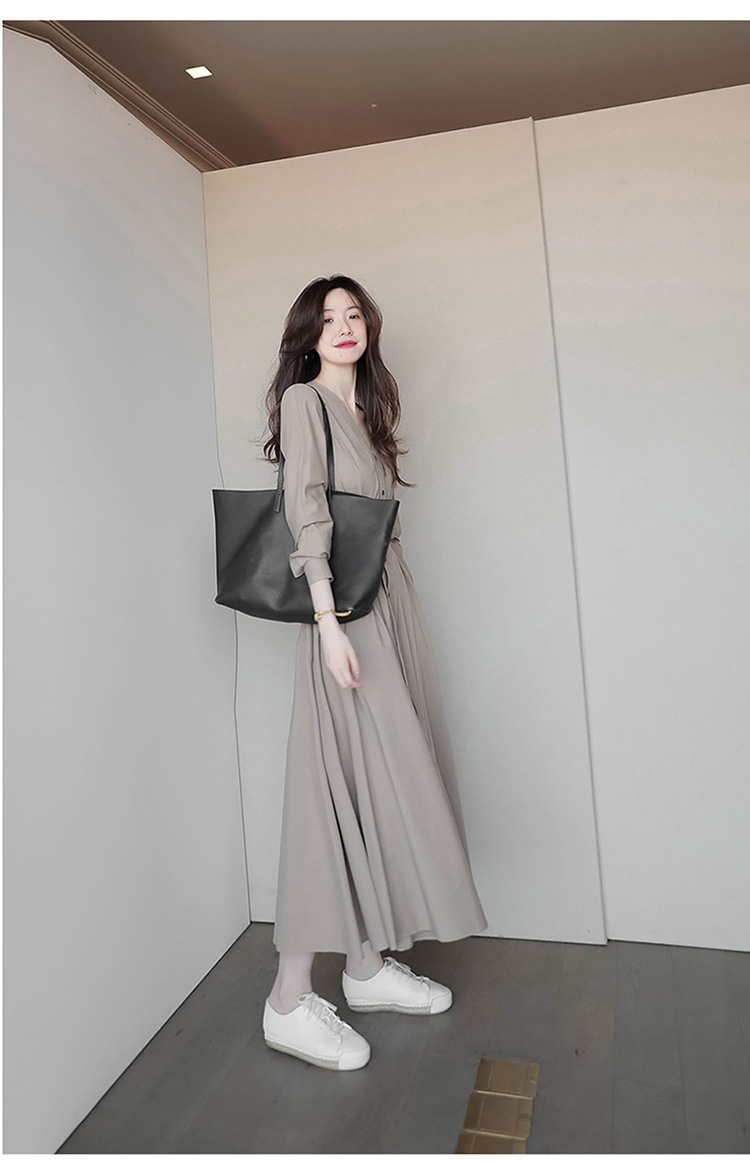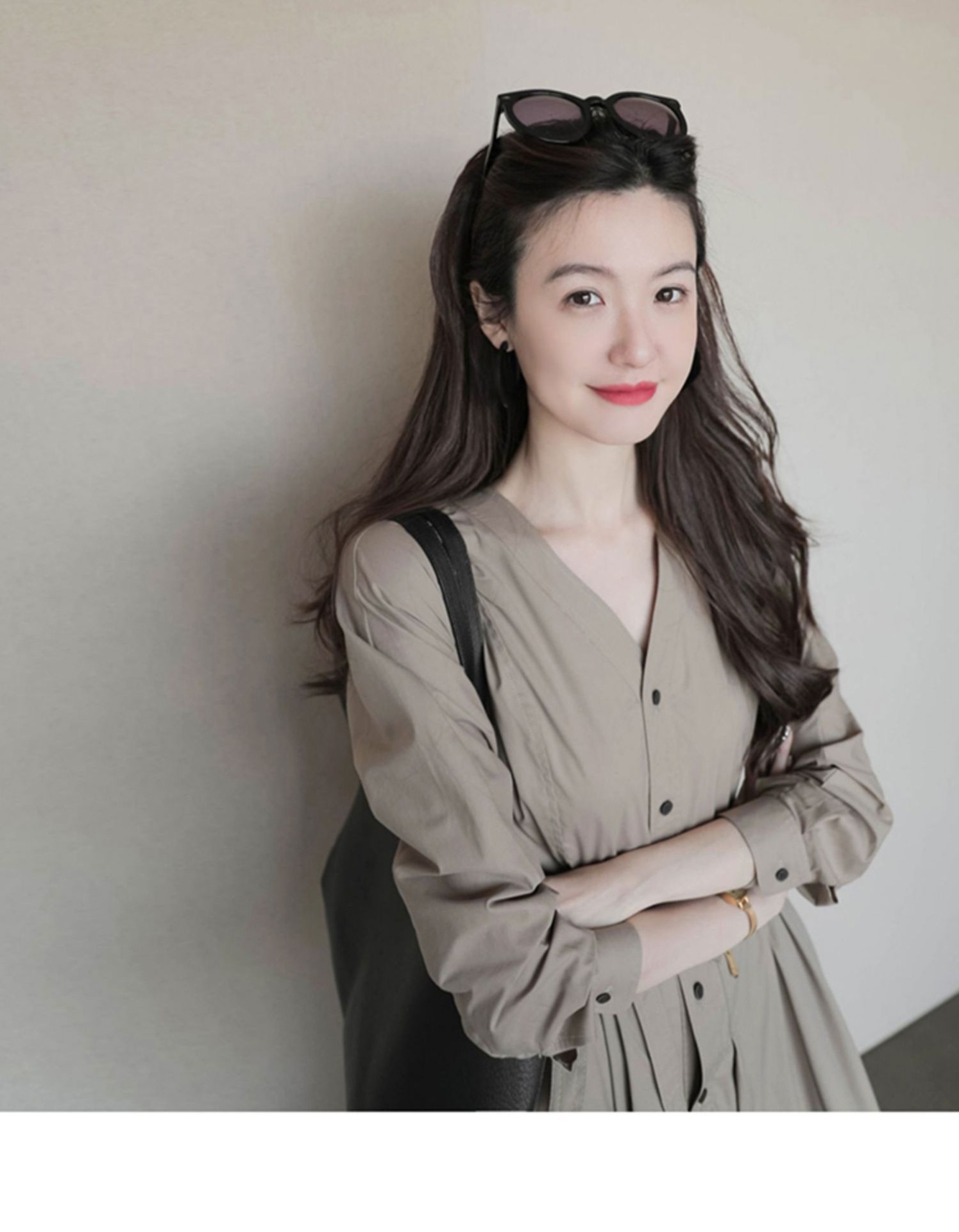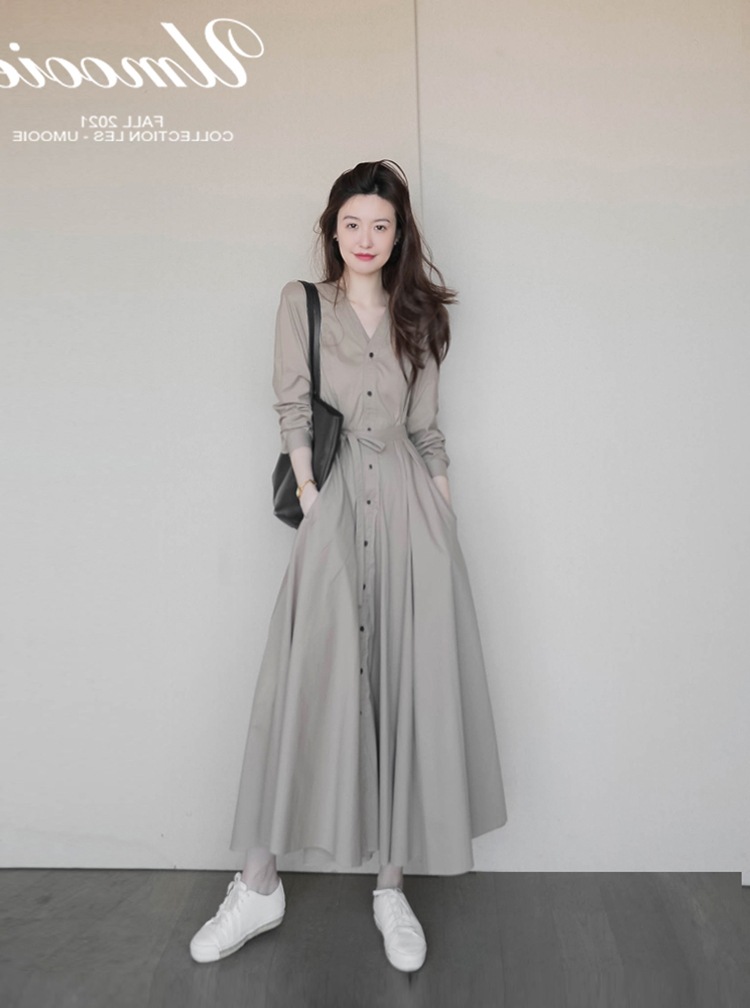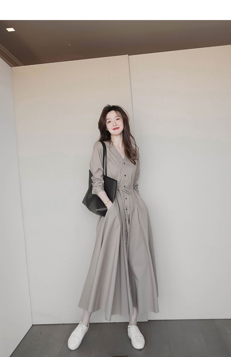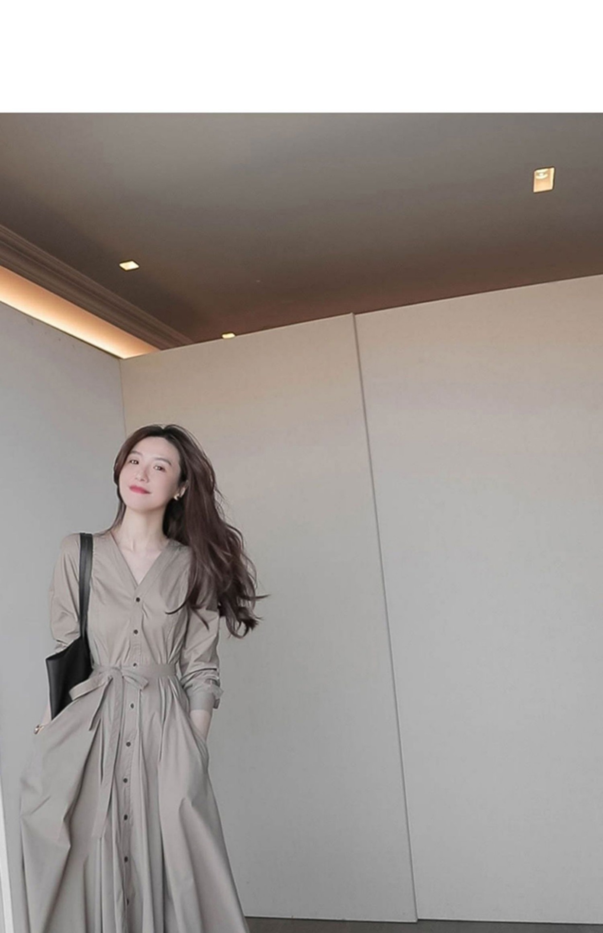 가을 프랑스 차 휴식 긴 원피스 하이 엔드 복고풍 부드러운 첫사랑 스커트 디자인 틈새 셔츠 원피스 여성 봄스토어 가기