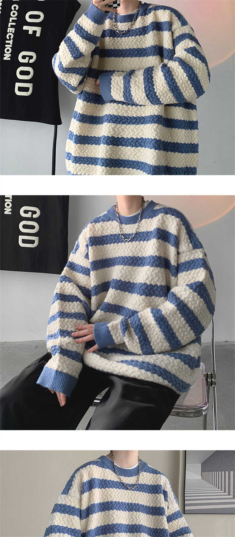 스트라이프 스웨터 남자의 가을과 겨울 새로운 게으른 일본 느슨한 재킷 복고풍 패션 브랜드 겨울 두꺼운 긴팔 스웨터스토어 가기