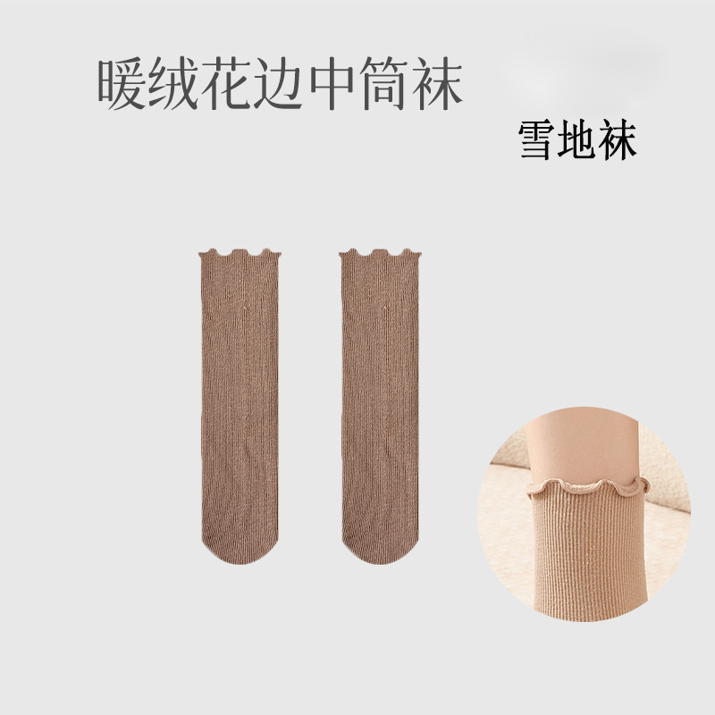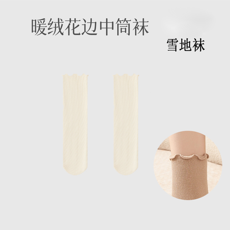山羊绒雪地袜子女中筒秋冬厚款长筒竖条直板加绒月子袜保暖地板袜