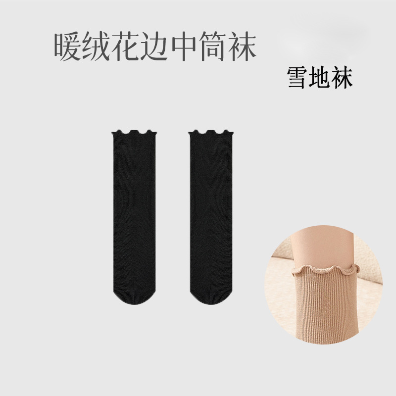 山羊绒雪地袜子女中筒秋冬厚款长筒竖条直板加绒月子袜保暖地板袜스토어 가기