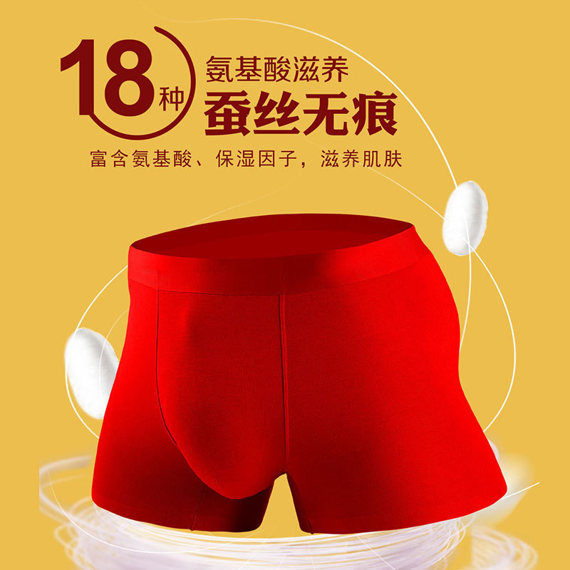 남자의 빨간 속옷 도매 3 박스형 원활한 남자 박스형 복서 반바지 뽕나무 실크 항균 가랑이 남자 복서 바지스토어 가기