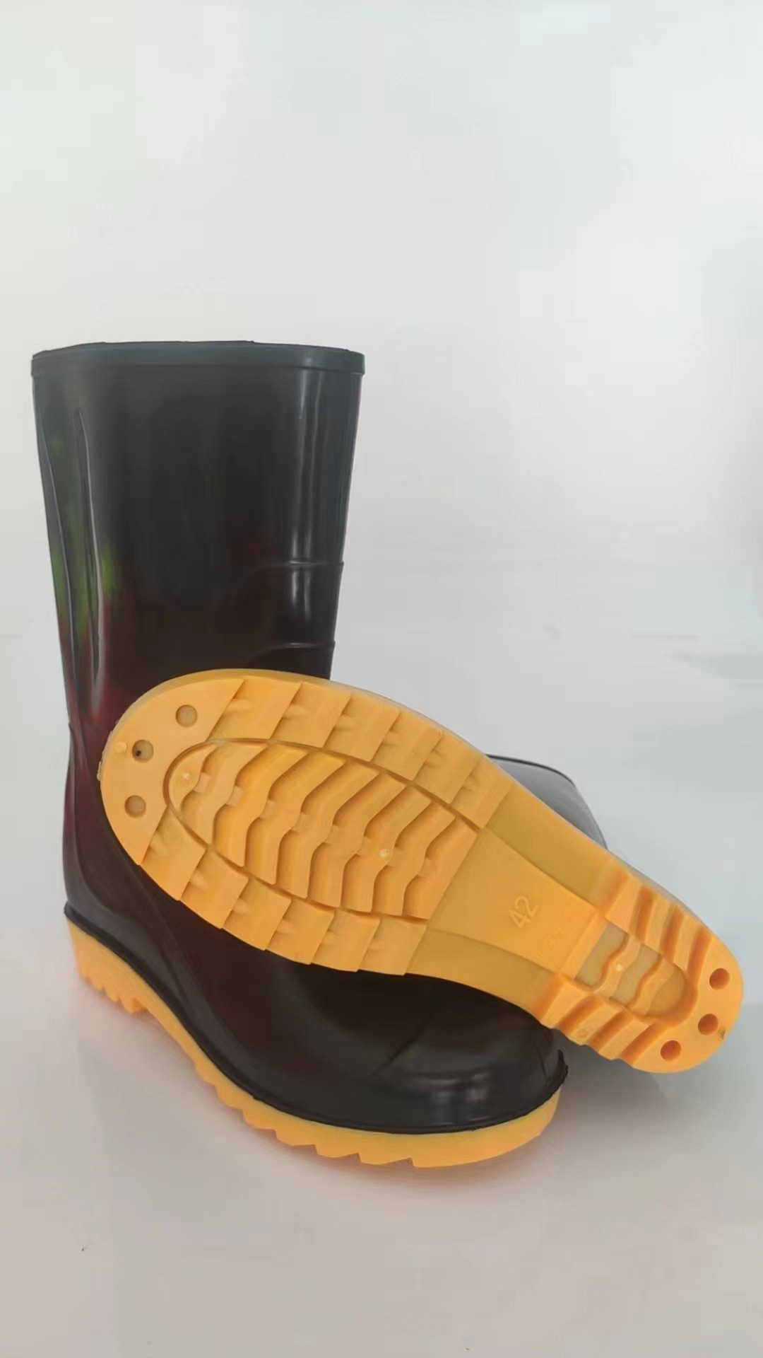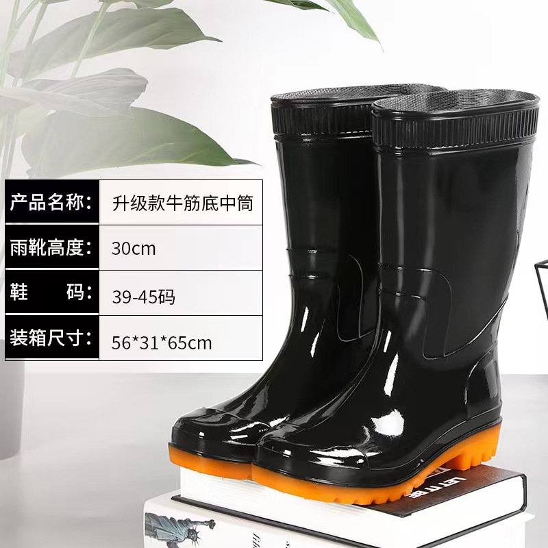 건설 현장 레인 부츠 미들 튜브 블랙 노동 보호 레인 부츠 남자 주방 물 장화 PVC 고무 노동 보호 조달 물 신발 하이 튜브
