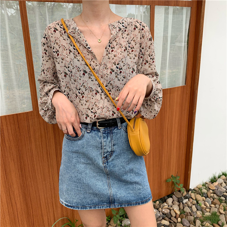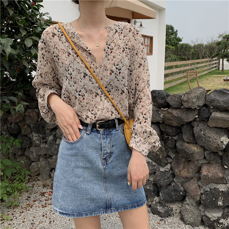 2021 년 가을 새로운 도착 한국 스타일 달콤한 슈퍼 요정 우아한 인기 INSV 칼라 느슨한 꽃 쉬폰 셔츠 최고 여성 의류스토어 가기