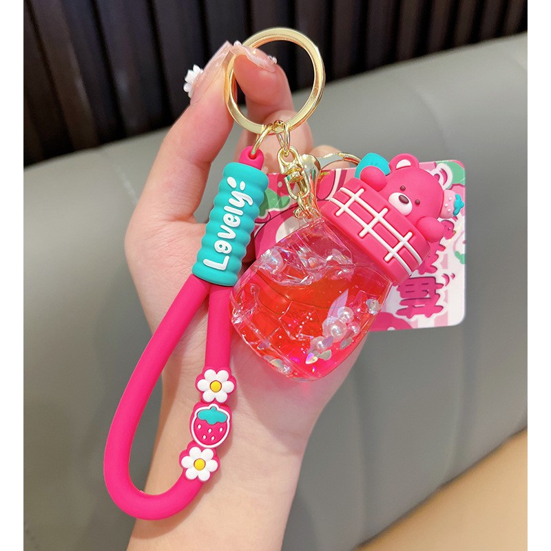 기름 표류 병 딸기 곰 액체 열쇠 고리 도넛 곰 플로팅 펜던트 음료 열쇠 고리 작은 선물스토어 가기