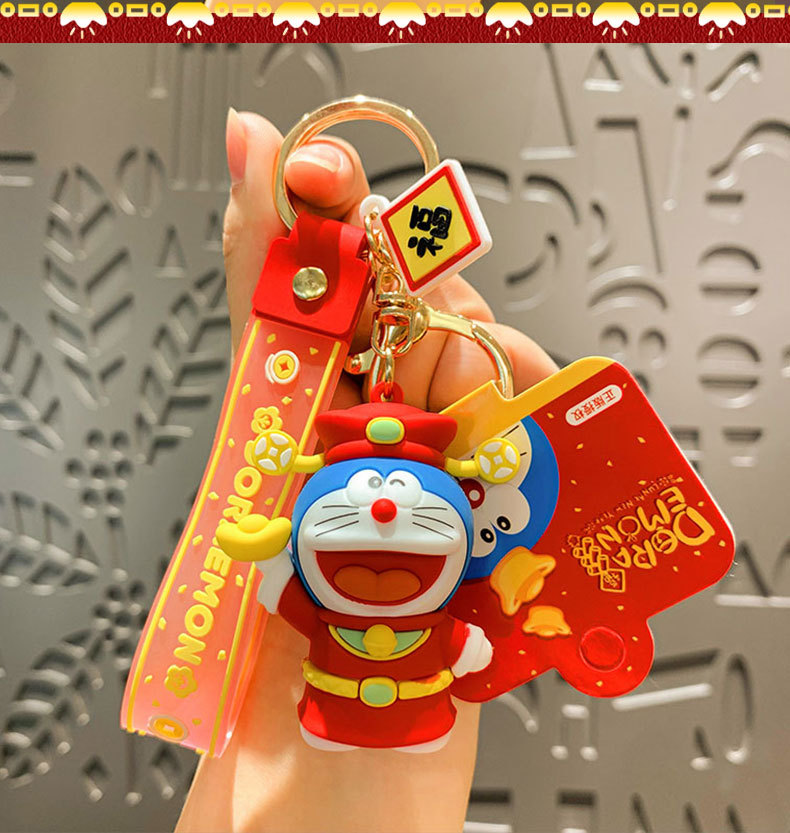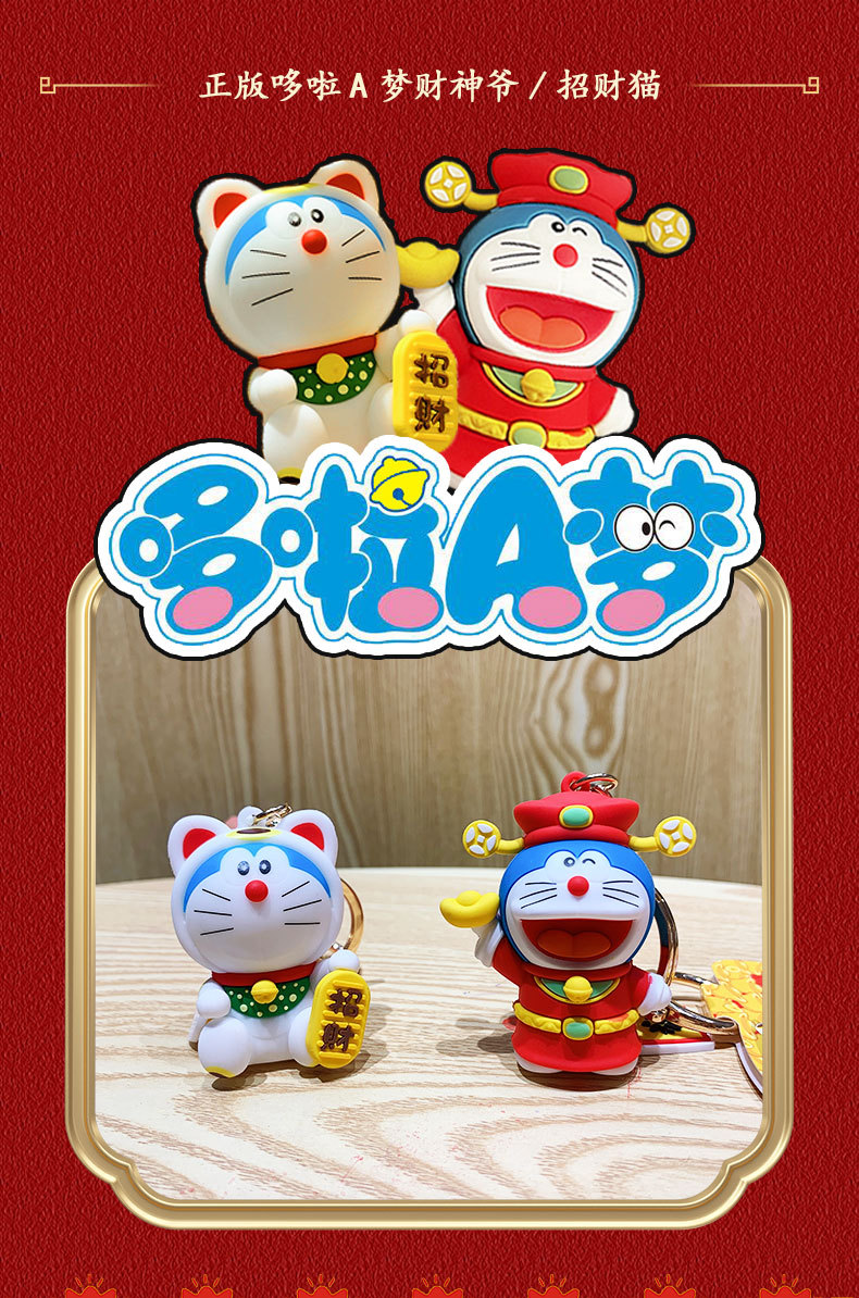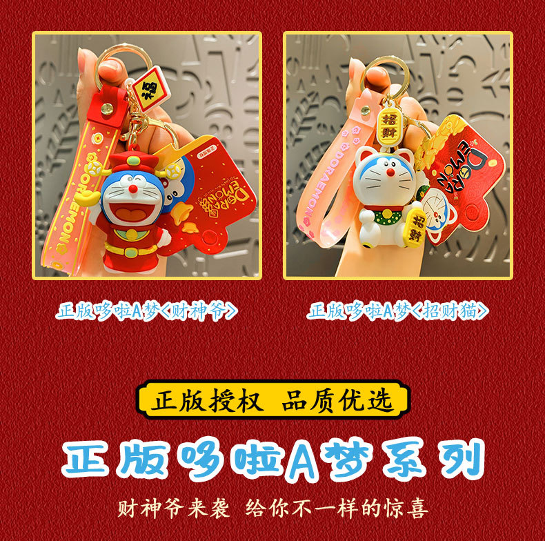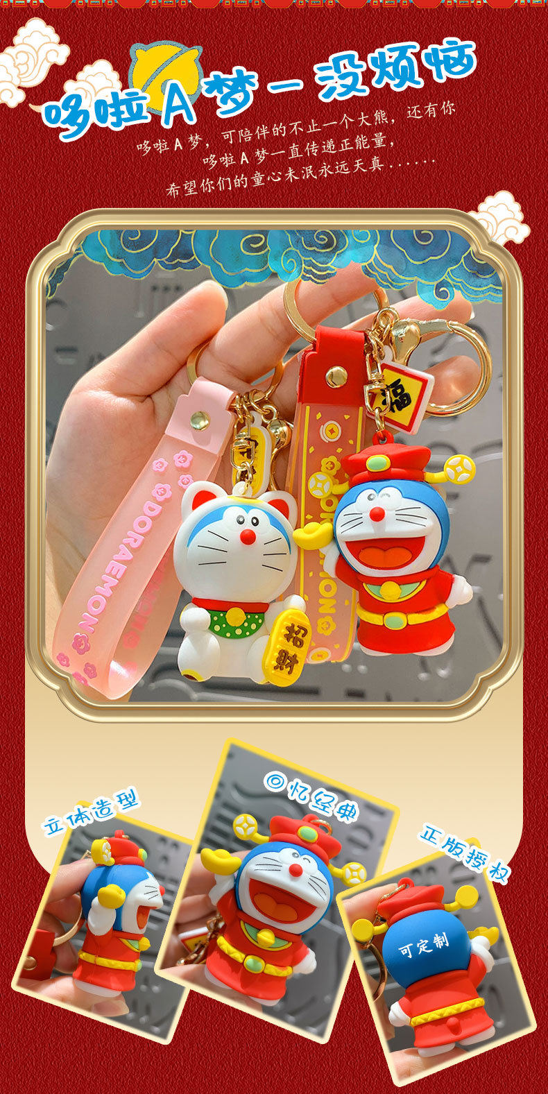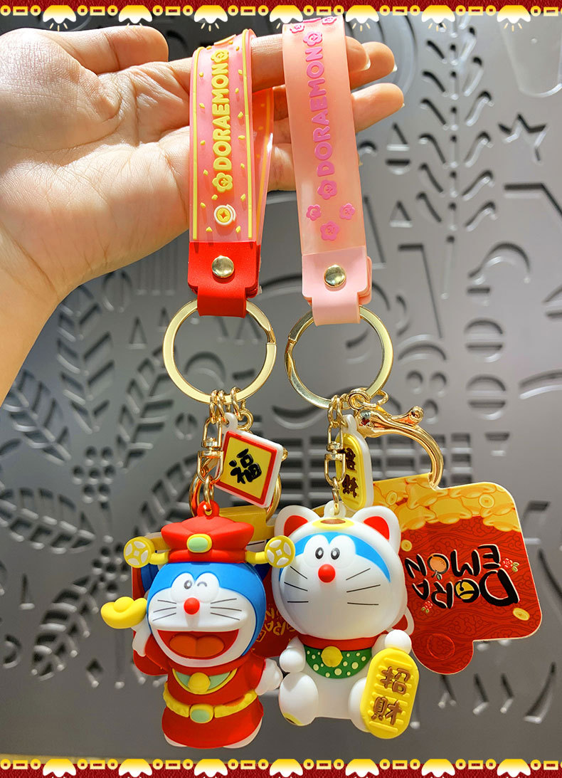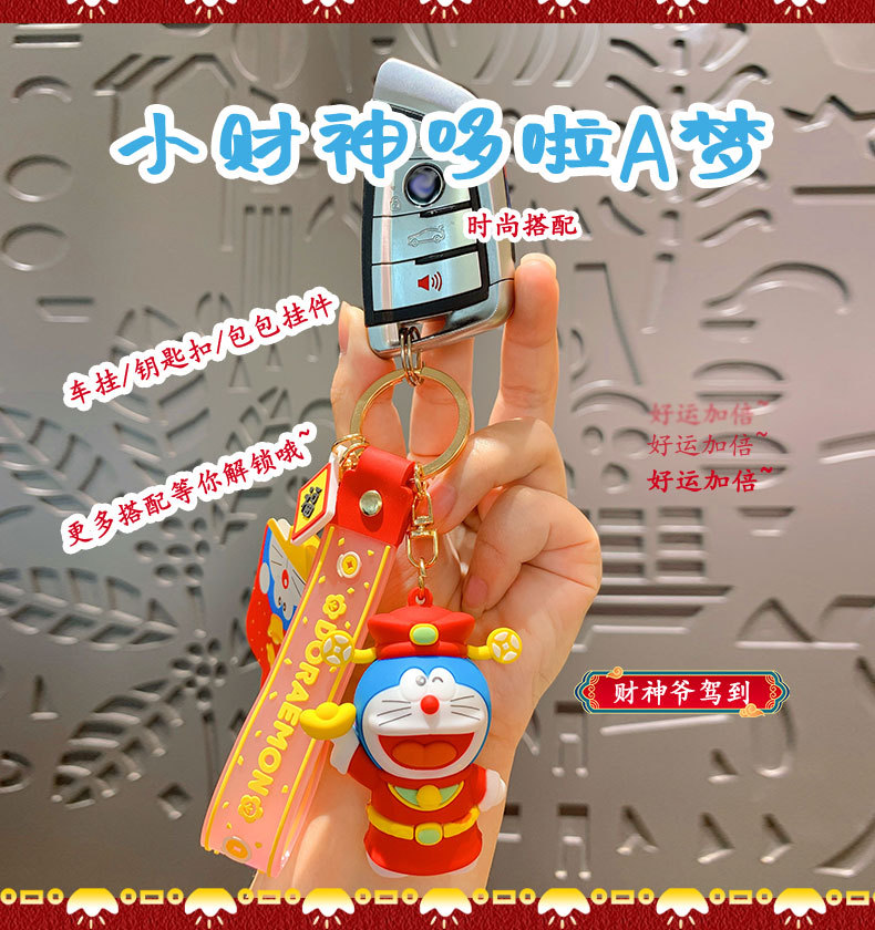 정품 도라에몽 Caishen 열쇠 고리 펜던트 귀여운 징글 고양이 새해 가방 교수형 선물 도매스토어 가기
