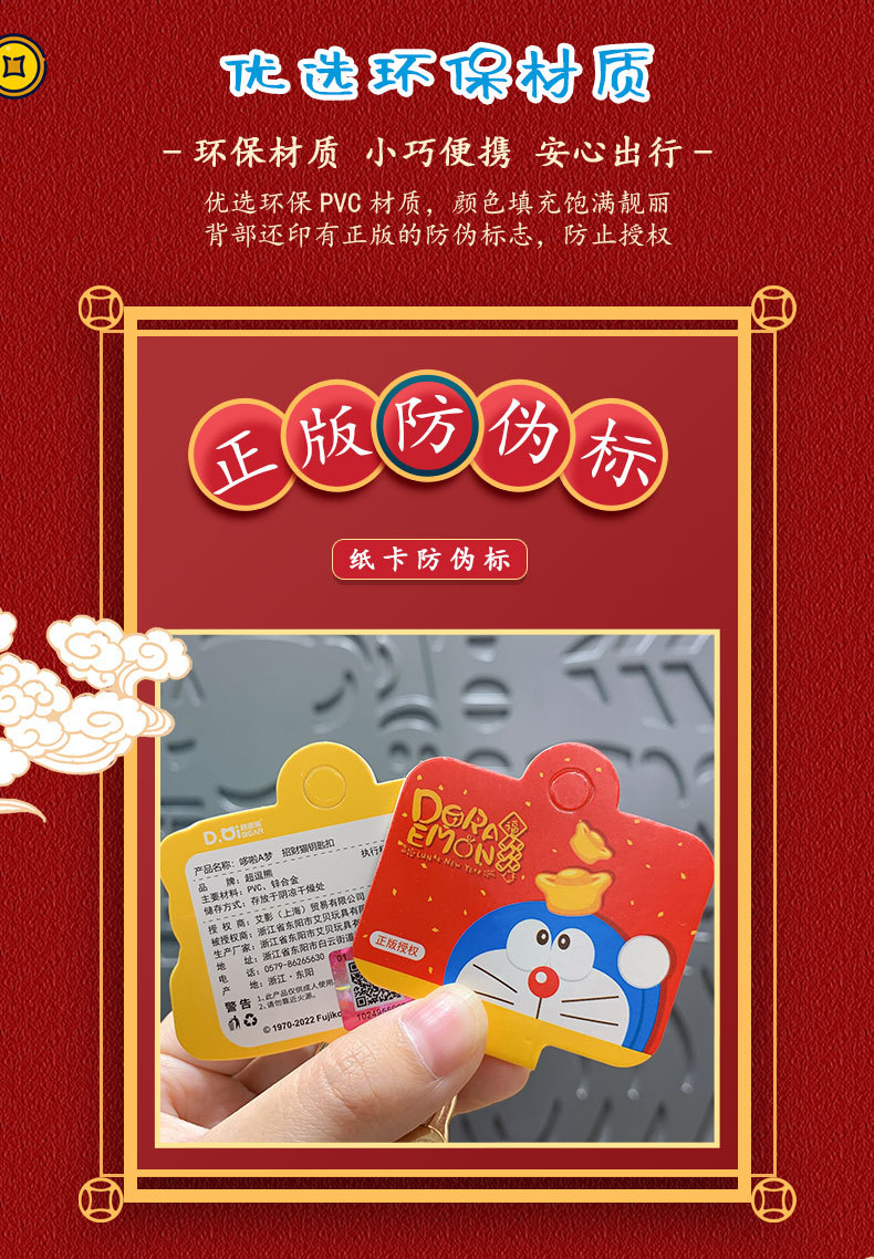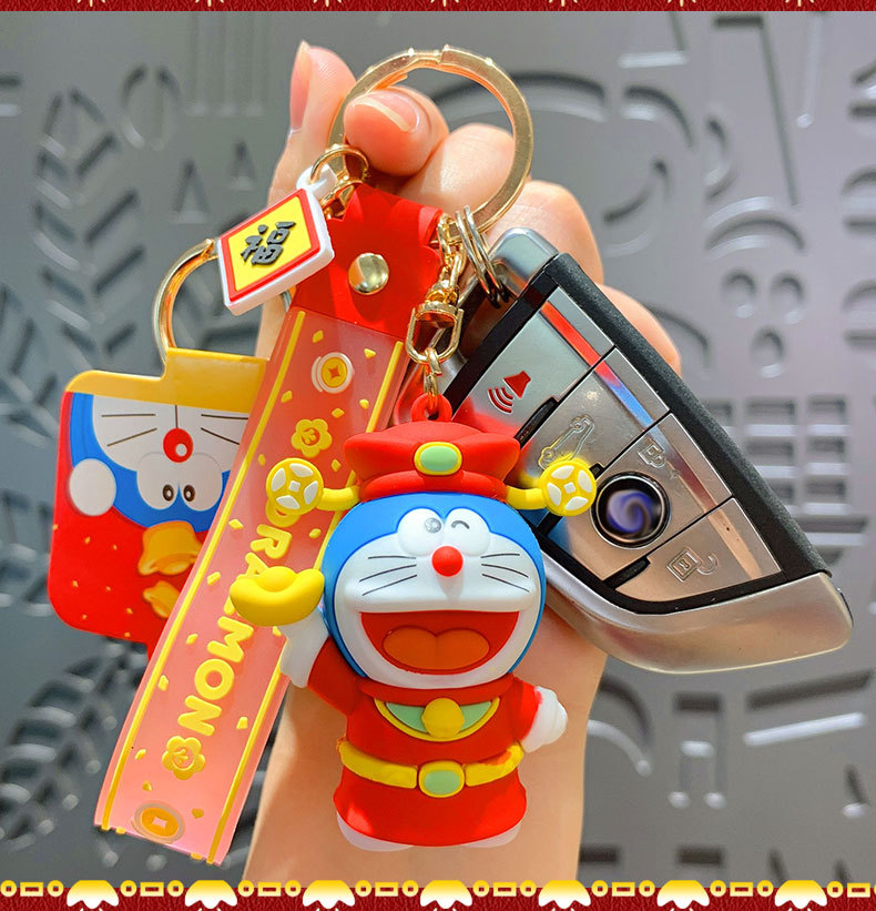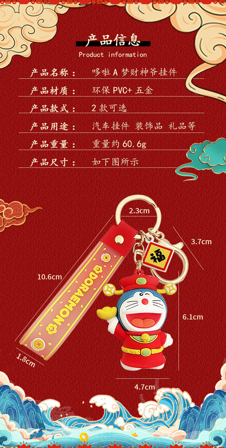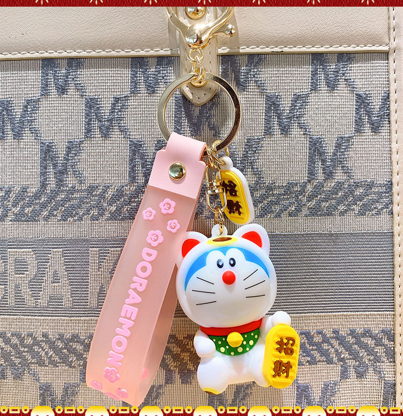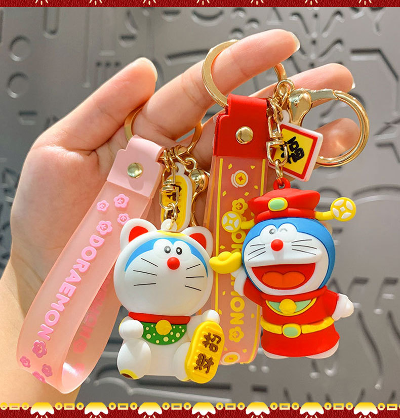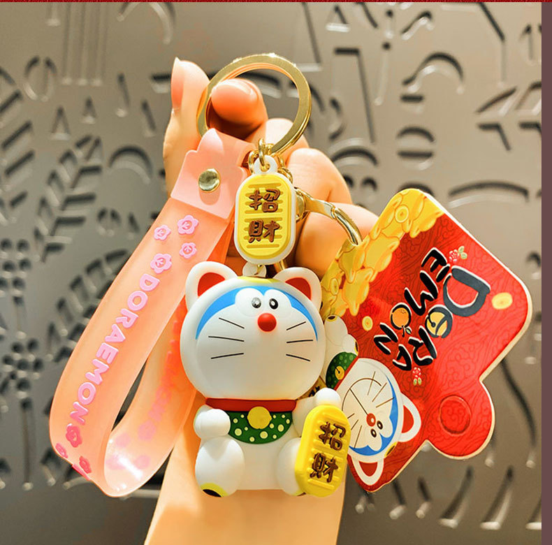 정품 도라에몽 Caishen 열쇠 고리 펜던트 귀여운 징글 고양이 새해 가방 교수형 선물 도매스토어 가기