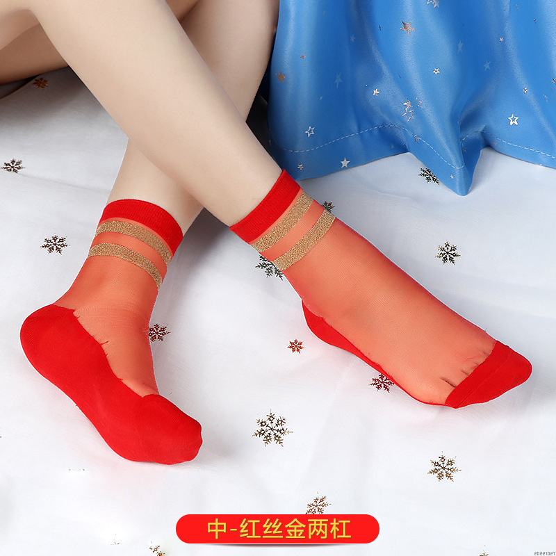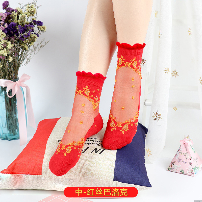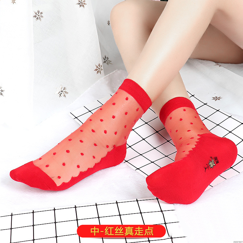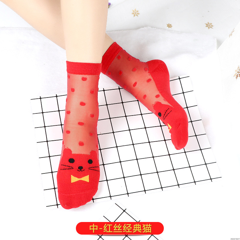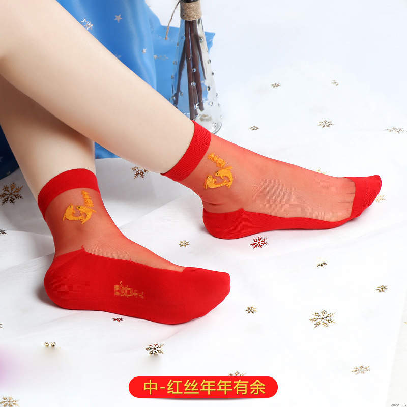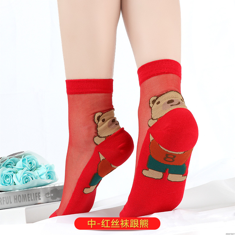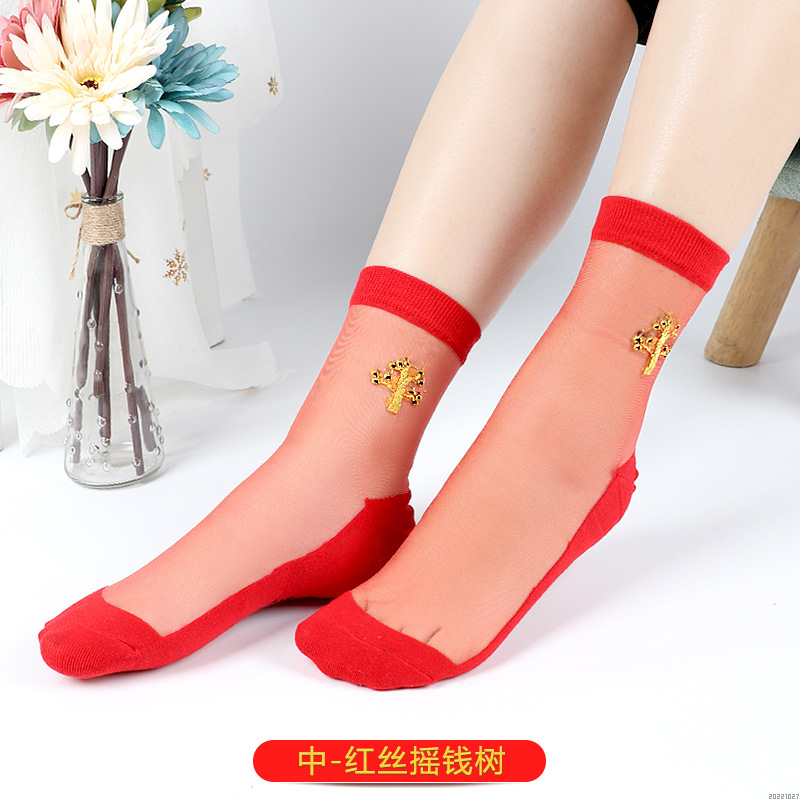 새해 빨간 양말 토끼 웨딩 레드 크리스탈 실크 코튼 하단 중간 유리 실크 양말 공장 도매스토어 가기