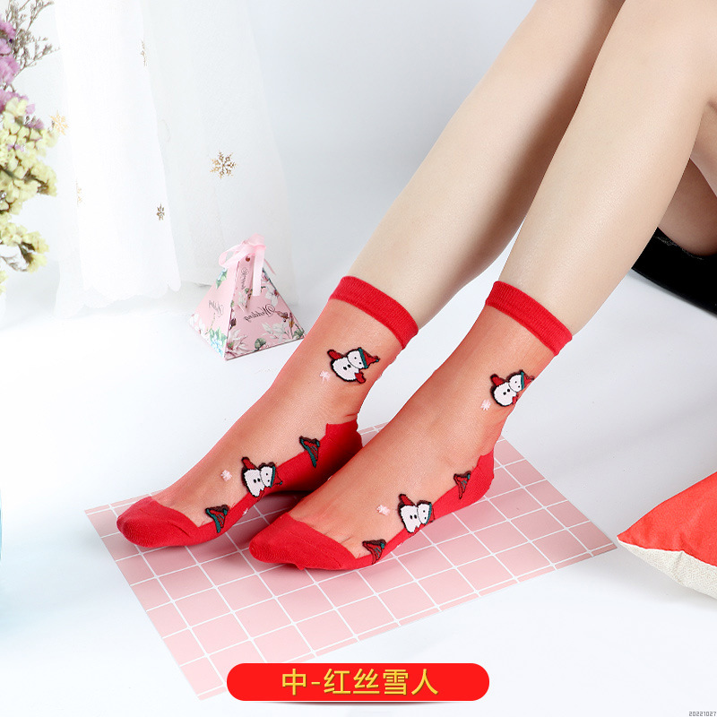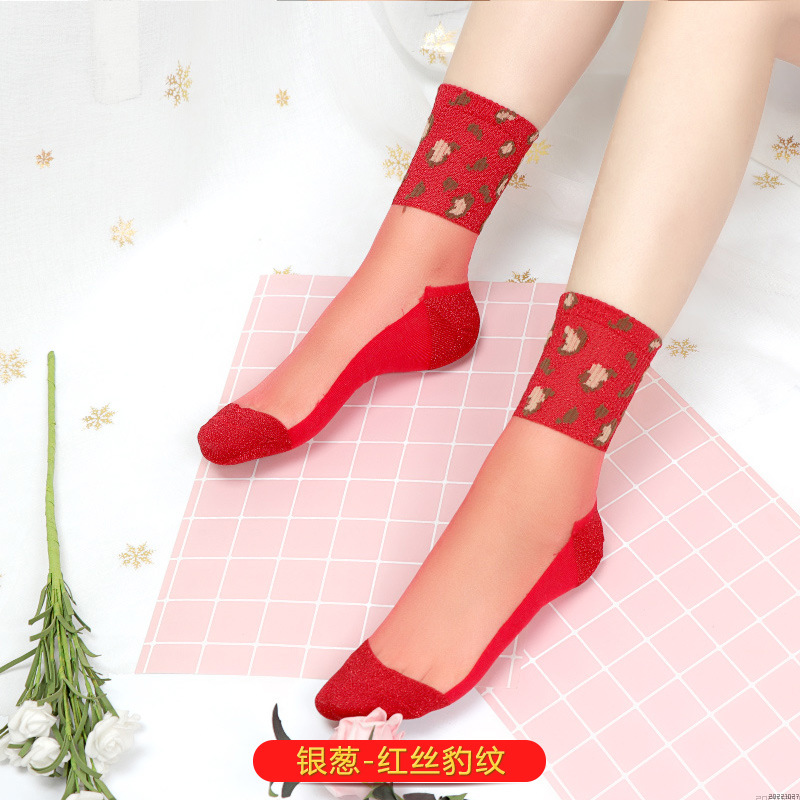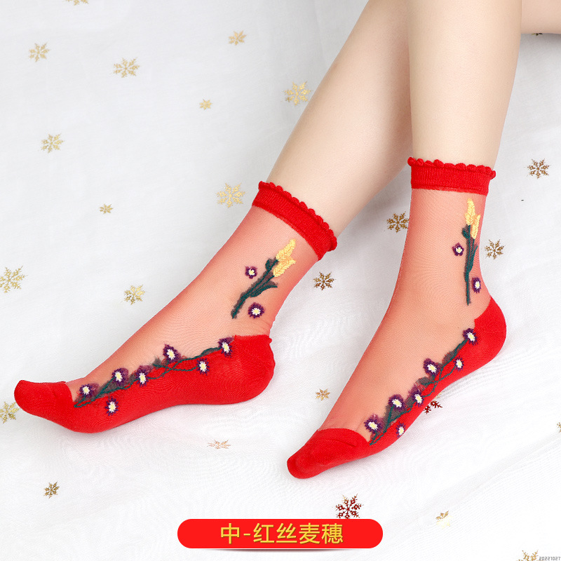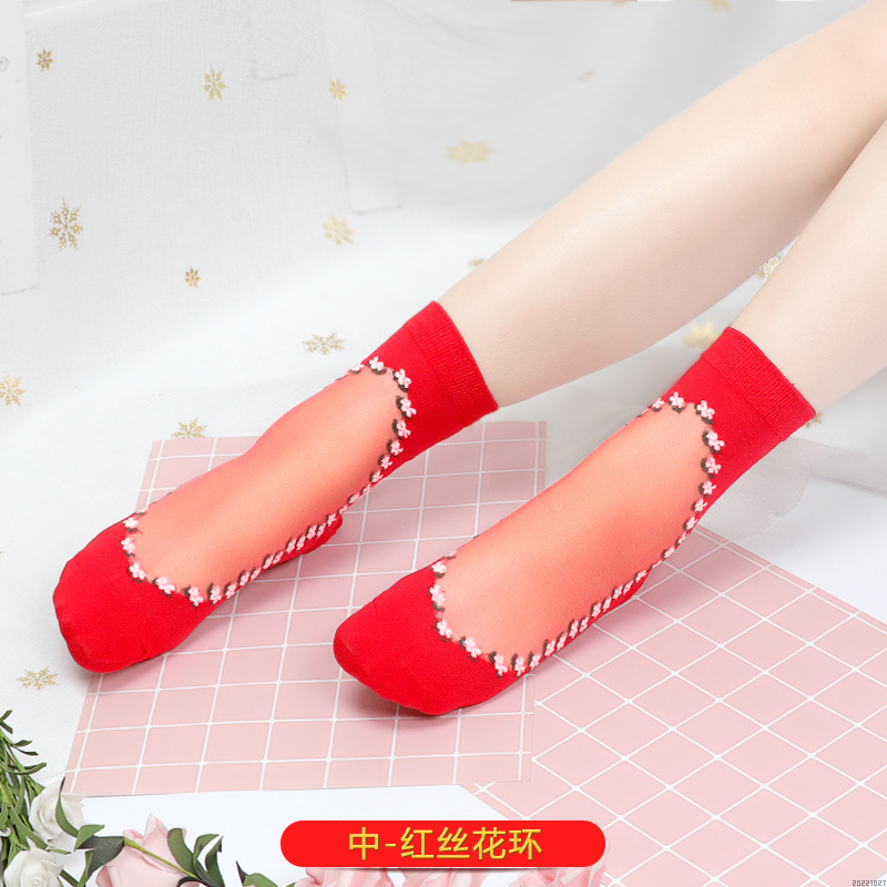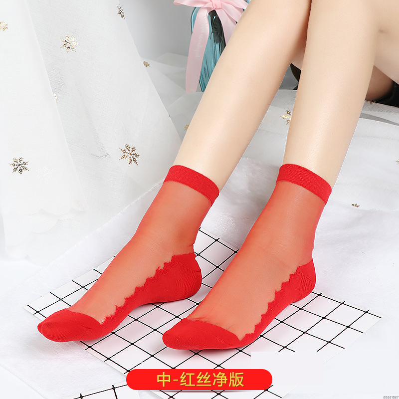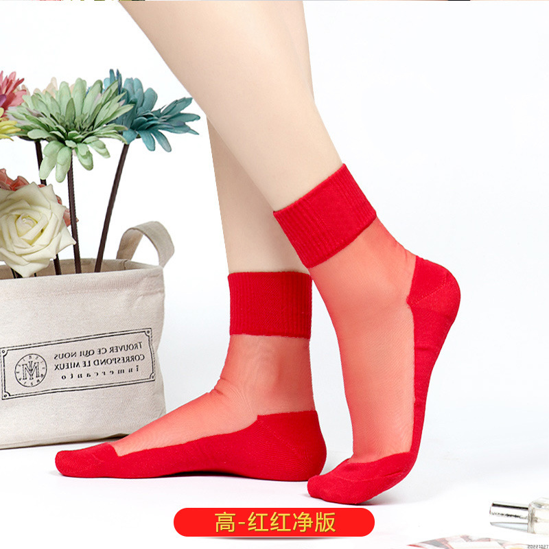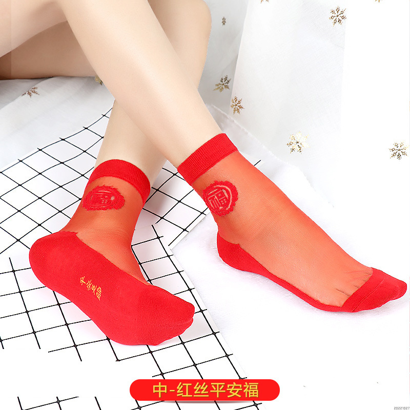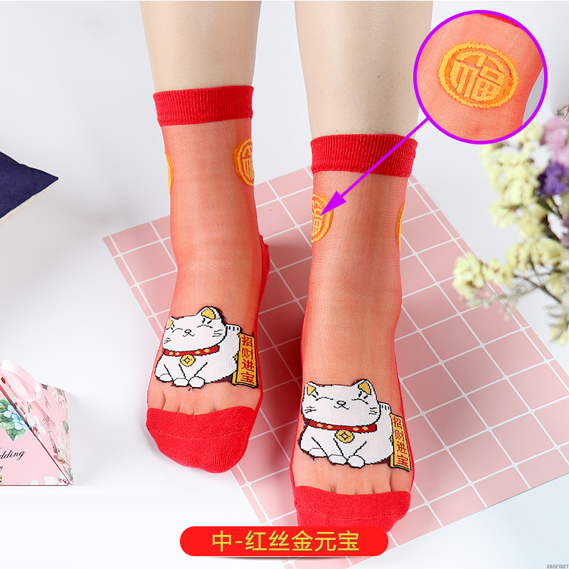 새해 빨간 양말 토끼 웨딩 레드 크리스탈 실크 코튼 하단 중간 유리 실크 양말 공장 도매스토어 가기