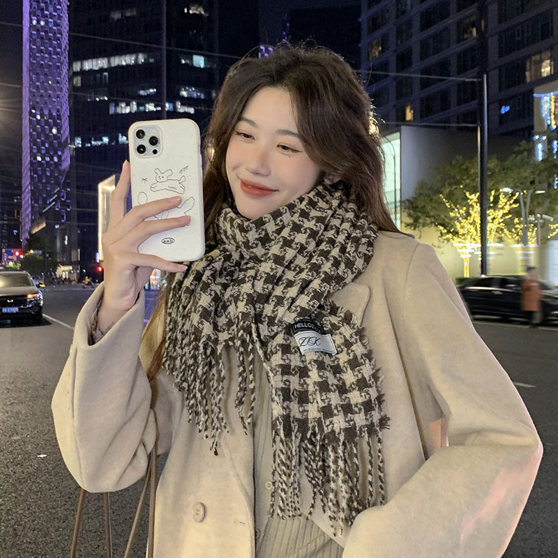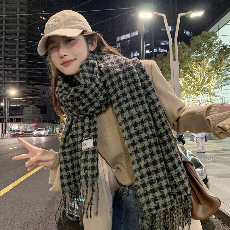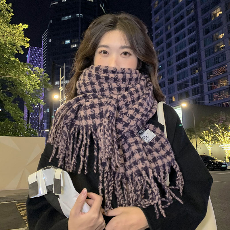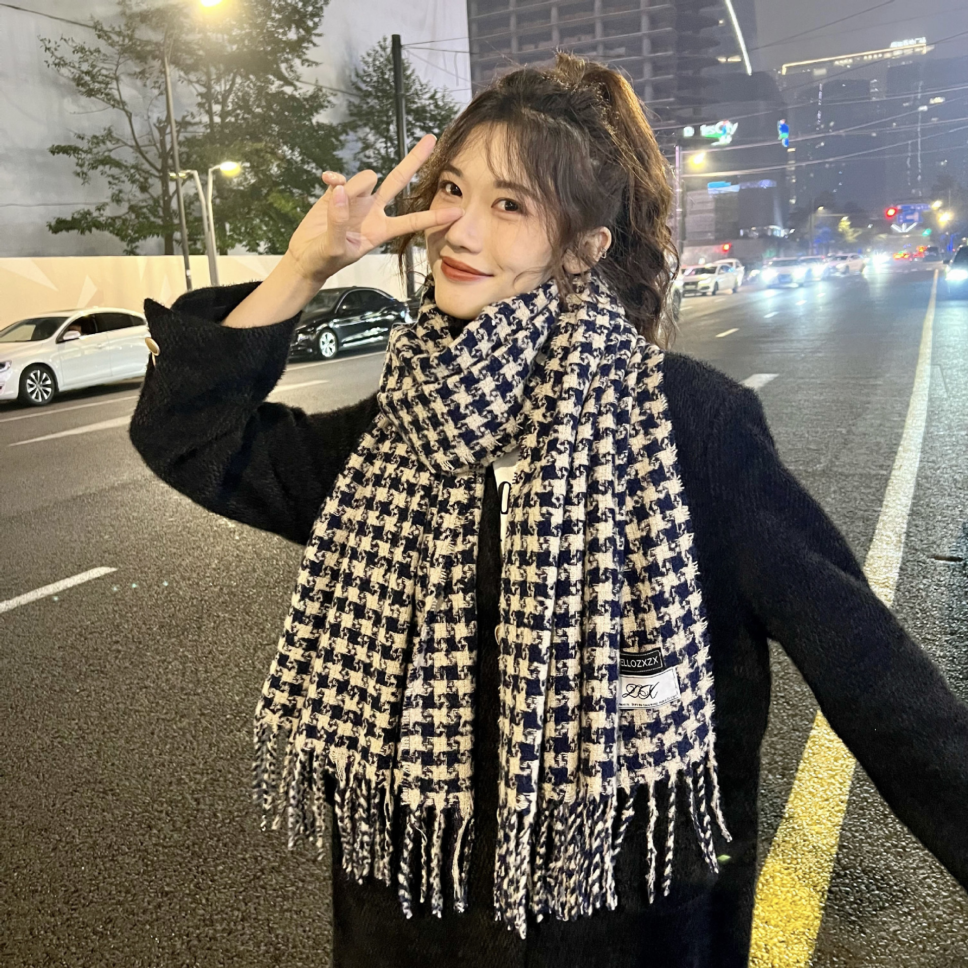 가을과 겨울 한국 스타일 스트리트 패션 모든 매치 격자 무늬 스카프 여성용 레트로 모든 매치 두꺼운 따뜻한 스카프 학생 커플