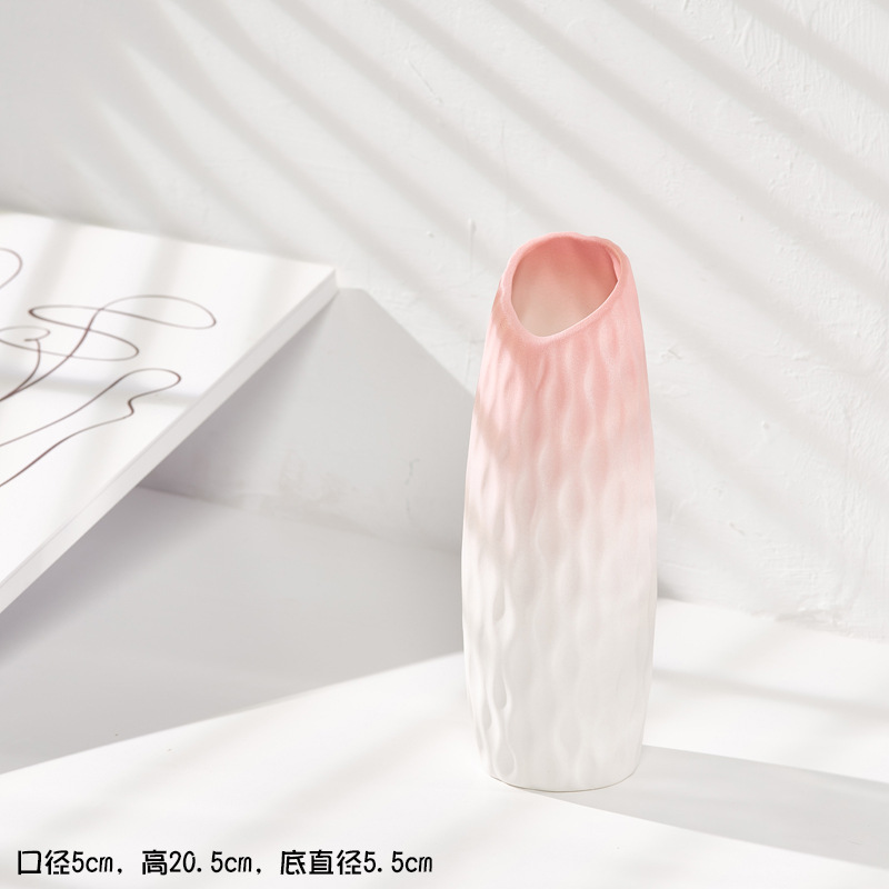읽기 핑크 그라디언트 세라믹 꽃병 창조적 인 현대 장식 말린 꽃 데스크탑 연구 거실 꽃 장식품 꽃