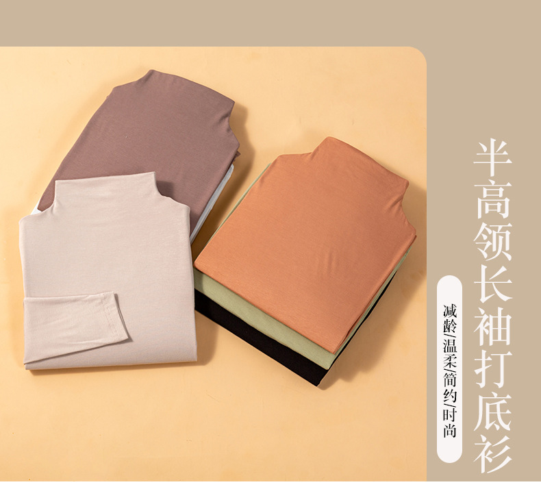 새로운 모달 하프 하이 넥 긴 소매 겉옷 내부 단색 가을과 겨울 탑 기본 여성스토어 가기