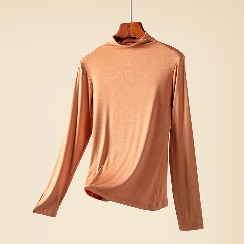 새로운 모달 하프 하이 넥 긴 소매 겉옷 내부 단색 가을과 겨울 탑 기본 여성