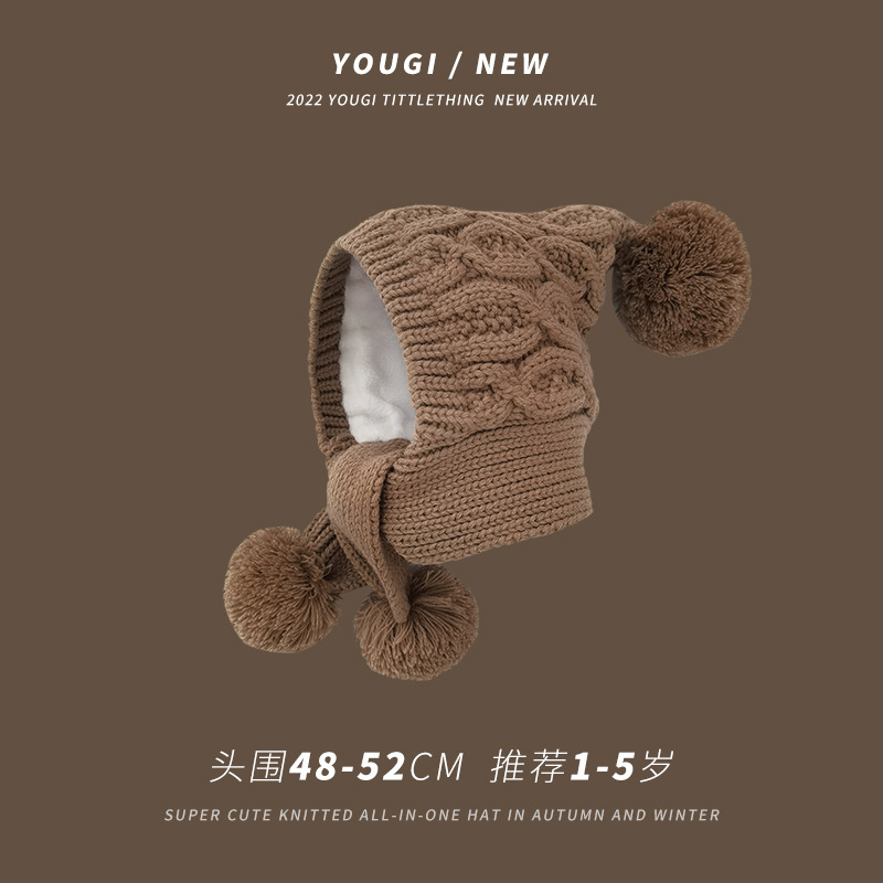 한국 어린이 모자 가을과 겨울 기모 아기 귀 보호 모자 겨울 따뜻한 소년과 소녀 양모 모자 풀오버 모자