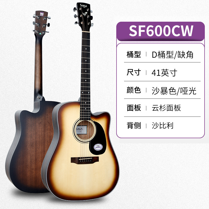 사가 기타 SF600C 어쿠스틱 기타 초보자 소년 소녀 특별 페이스 시트 SF700