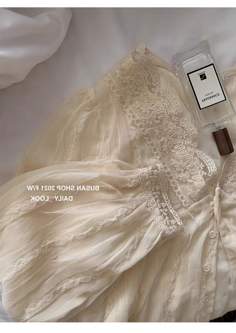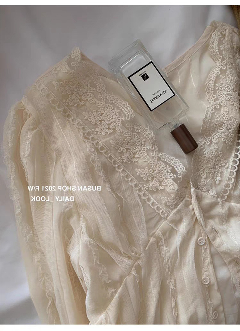 우아한 브이넥 레이스 셔츠 여성용 젠틀 올매치 쉬폰 셔츠 2023 가을 뉴 스위트 시크 디자인 센스 스몰 셔츠
