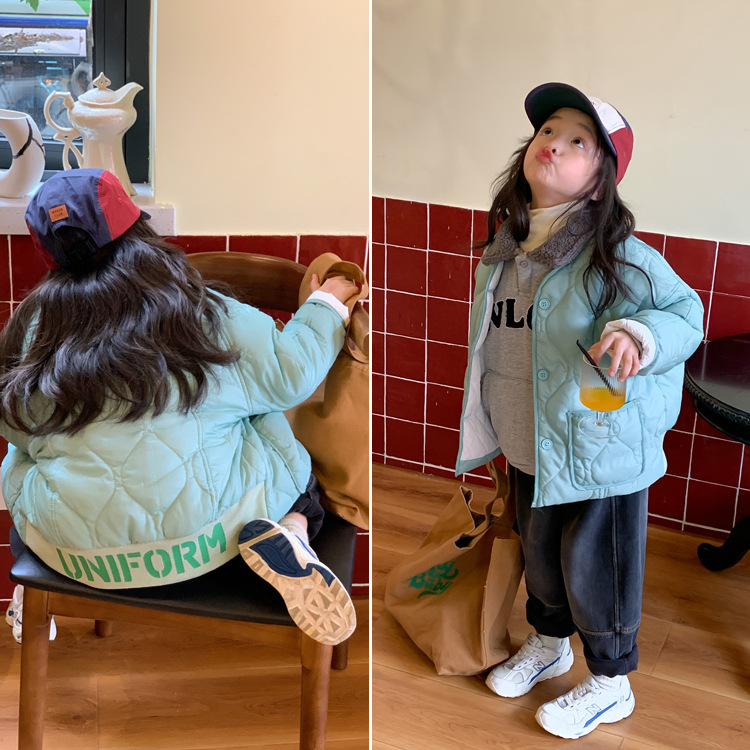 TCkids 겨울용 퀼팅 코튼 레터 프린트 코튼 재킷