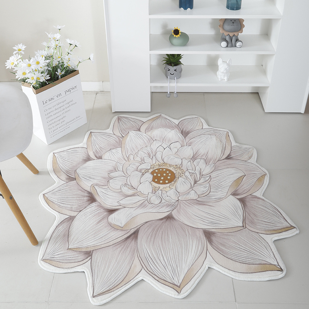 특이한 모양의 세탁 가능한 꽃무늬 거실 테이블 카펫, 인스 스타일 특이한 모양의 침대 옆 카펫, 침실용 인조 캐시미어 카펫