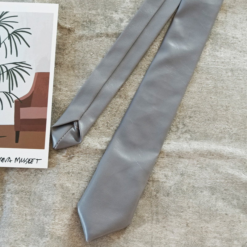 귀여운 소스 블랙 다크 브라운 PU 가죽 넥타이 여자의 복고풍 단색 손 모양의 좁은 버전 남성용 유행 성격스토어 가기