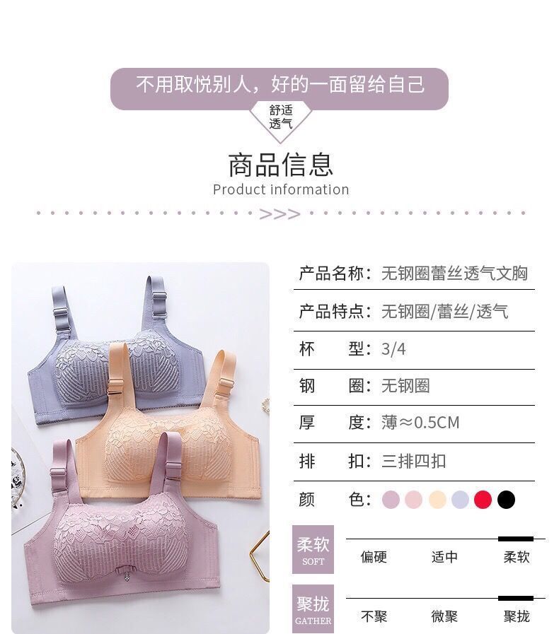 꽃의 우아함 A68 # 얇은 C컵 노와이어 브라, 옆가슴 보정 및 노출 방지, 푸쉬업 브라, 봄여름 여성용스토어 가기