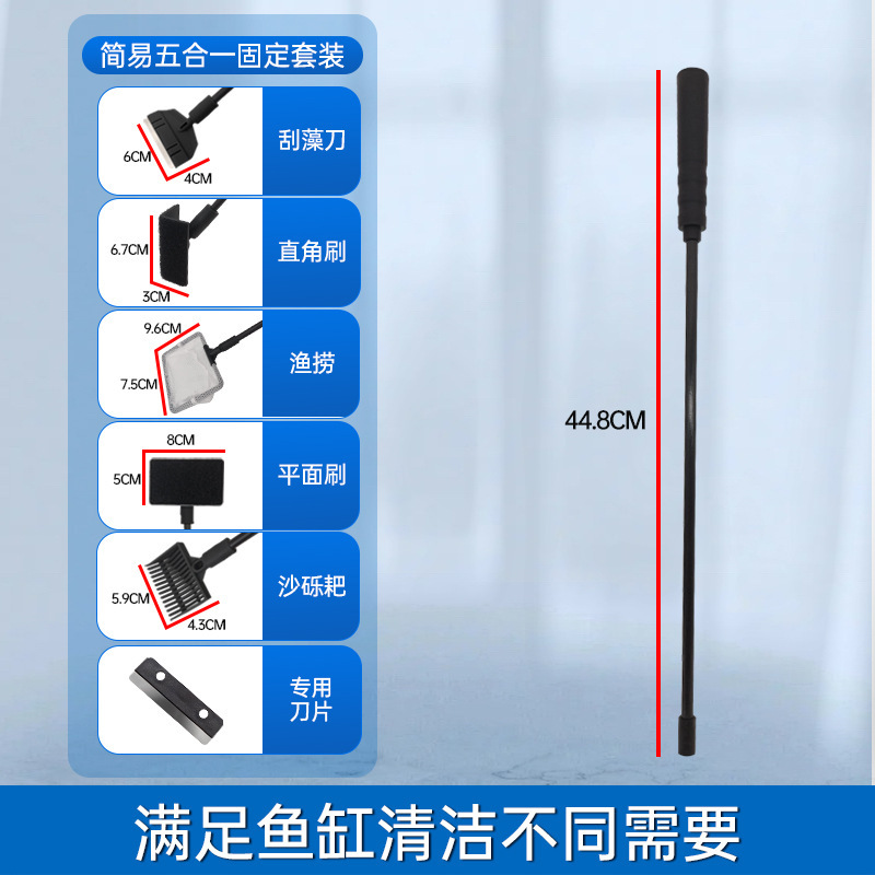 물고기 탱크 유리 청소 브러시 수족관 도구 낚시 잔디 삽 긁기 조류 칼 긴 손잡이 5-in-one 청소 세트스토어 가기