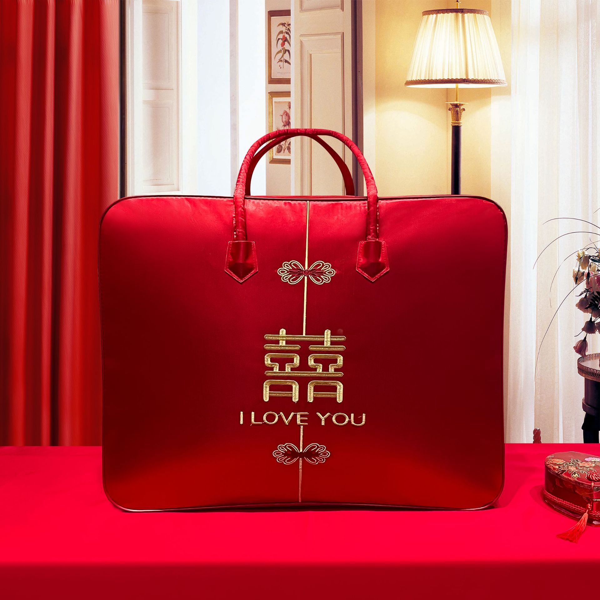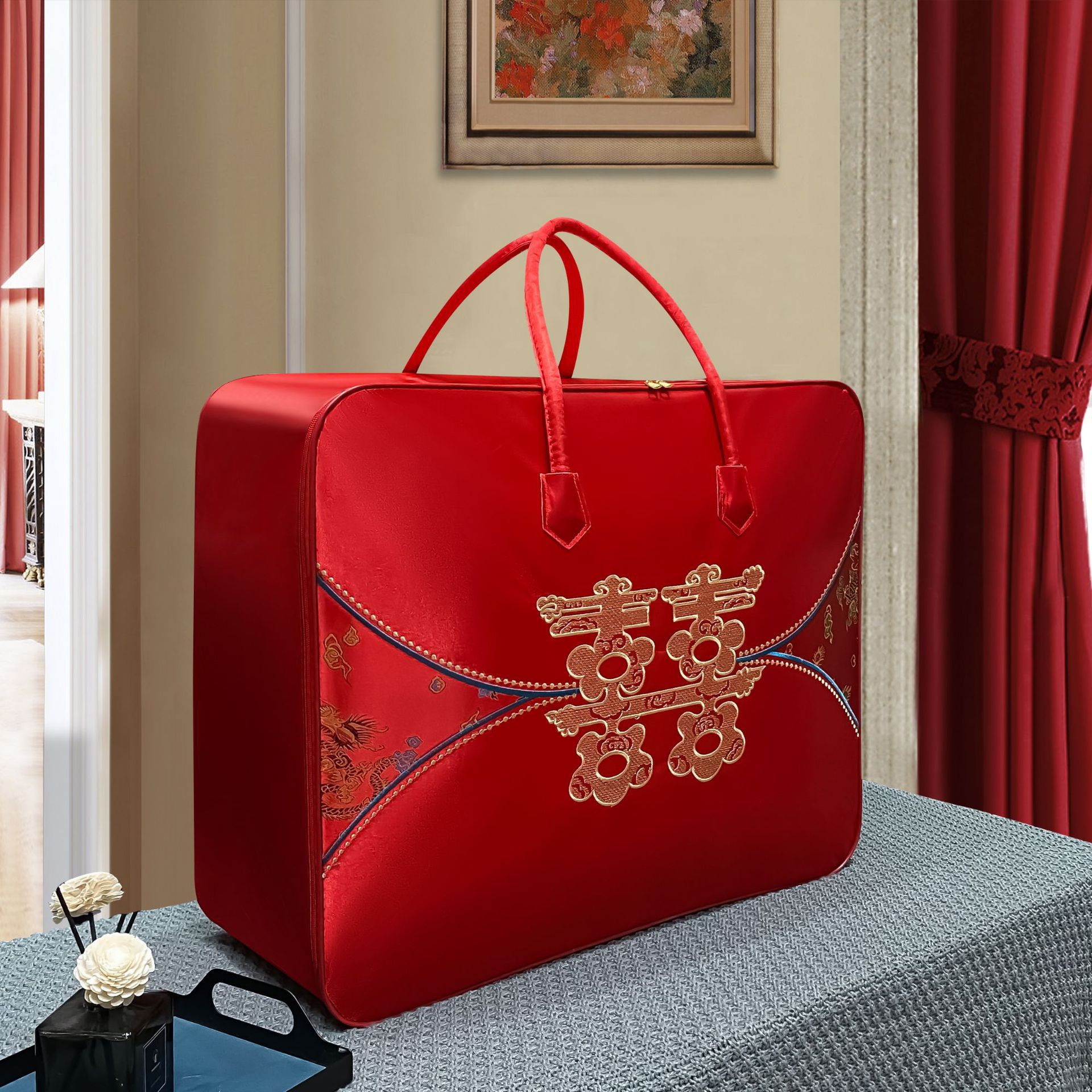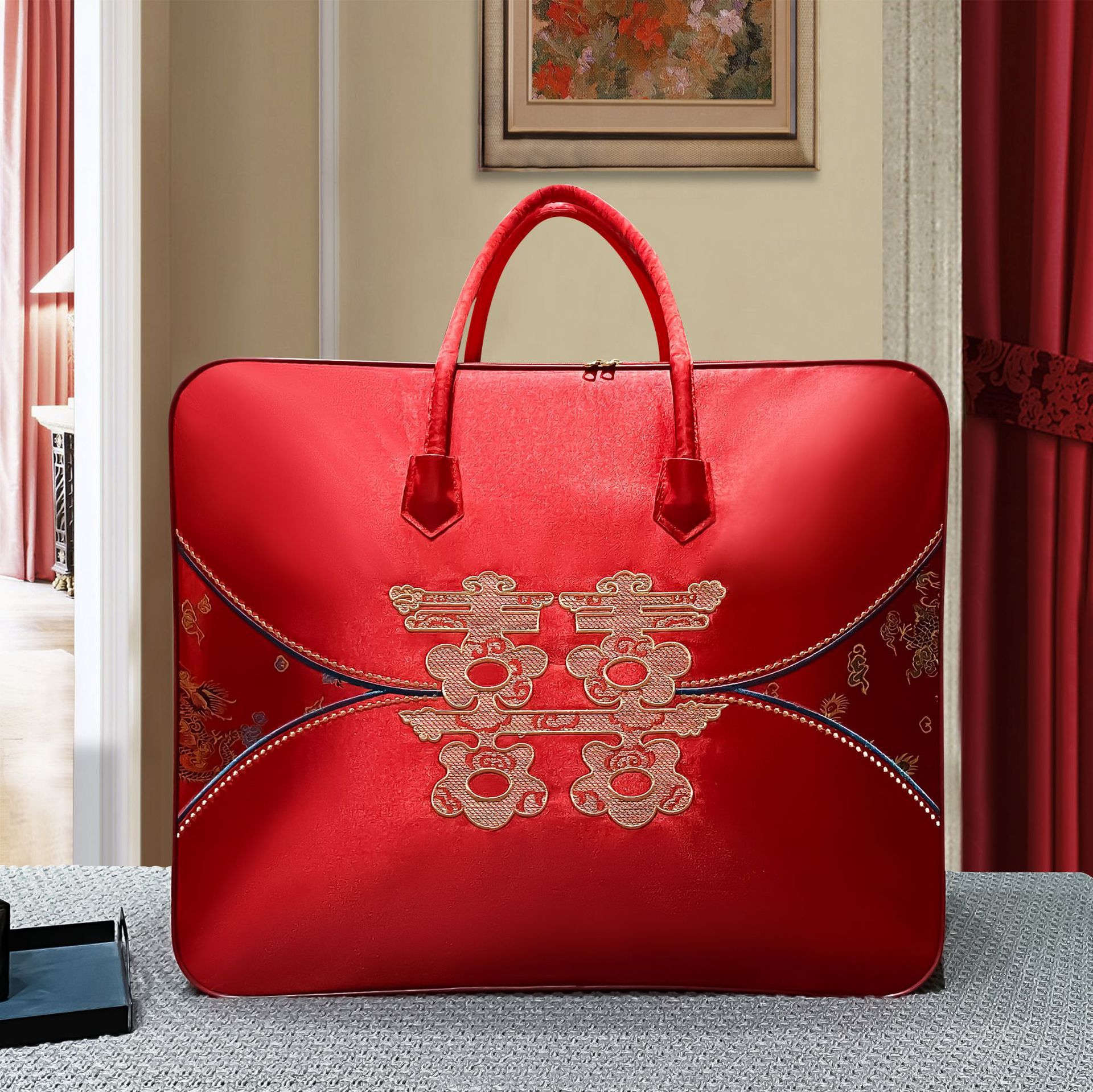 동반 이불 축제 포장 가방 웨딩 레드 이불 4 종 세트 두꺼운 옥스포드 천 핸드백 축제 이불 보관 가방