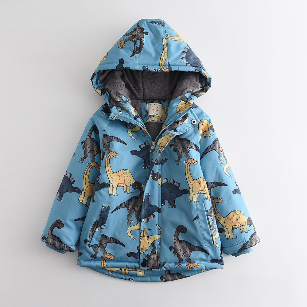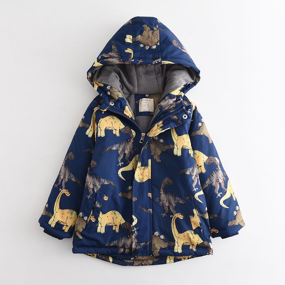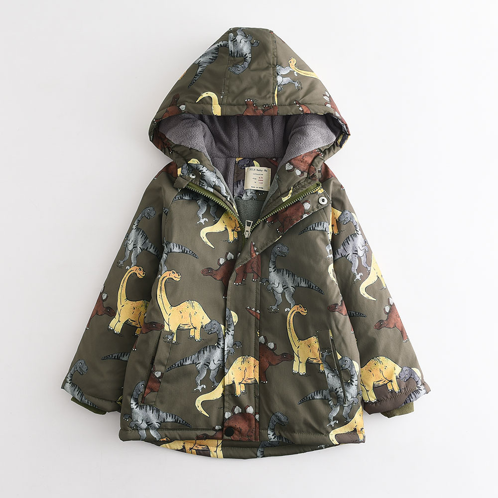 2022冬季新款 恐龙印花 男童连帽加绒加厚棉衣棉服棉袄