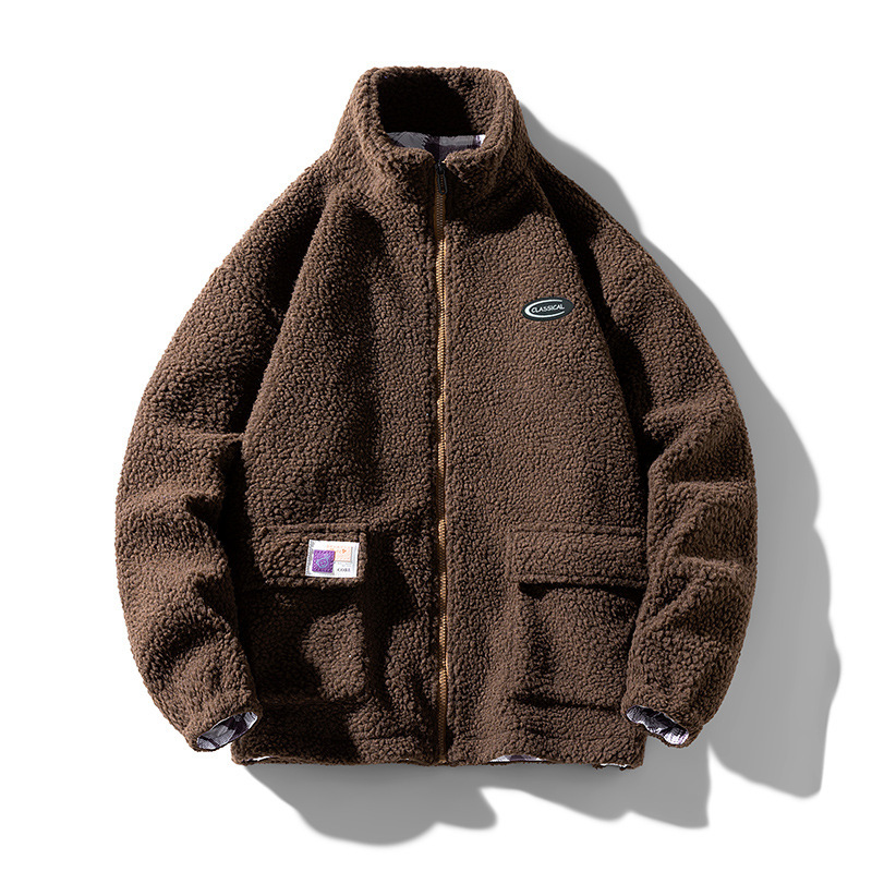 양가죽 코트 남자의 겨울 유행 브랜드 느슨한 캐주얼 기모 두꺼운 재킷 면 패딩 따뜻한 재킷