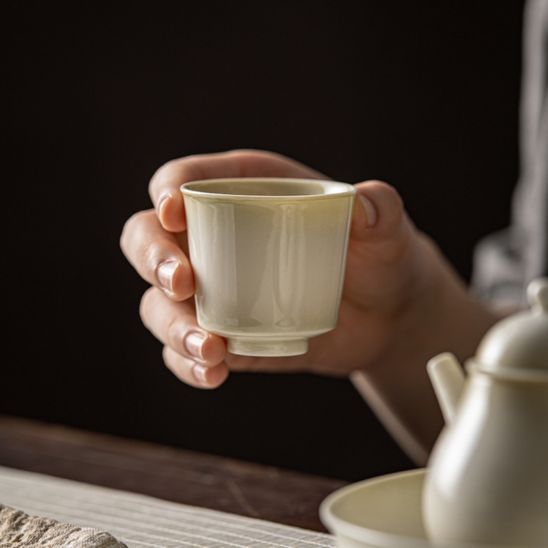 빈티지 그린 그레이 유약 스퀘어 컵 가정용 세라믹 차 차단기 쿵푸 차 세트 단일 공용 컵 중국 차 바다 차 누출 컵스토어 가기