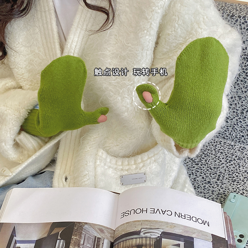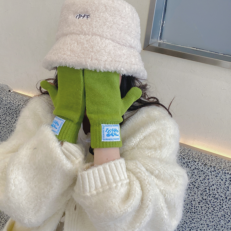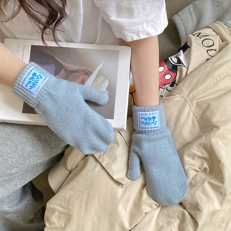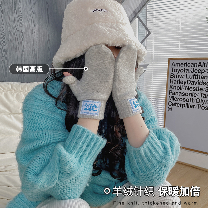겨울 따뜻한 캐시미어 장갑 여성용 터치 스크린 한국식 학생 기모 두꺼운 모든 것을 포함하는 손가락 장갑 유행스토어 가기