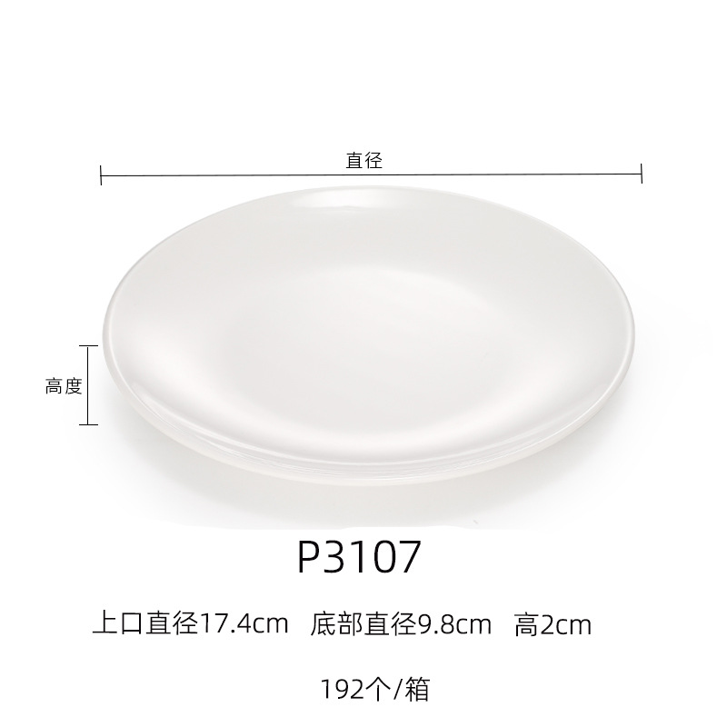 品名:密胺圆形白盘 颜色: 白色 材质:密胺 适温范围:-30℃~80℃ 【温馨提示】产品图片均为100%实物拍摄,因拍摄灯光及不同显示器色差等问题,可能造成商品图片与实物有一定色差。 关于产品底标,我司自有底鼎洪、WANIANHONG、鼎萬宏、 空白底标或外贸底标,量少不指定底标,随机发货,量大可做客户指定底标。