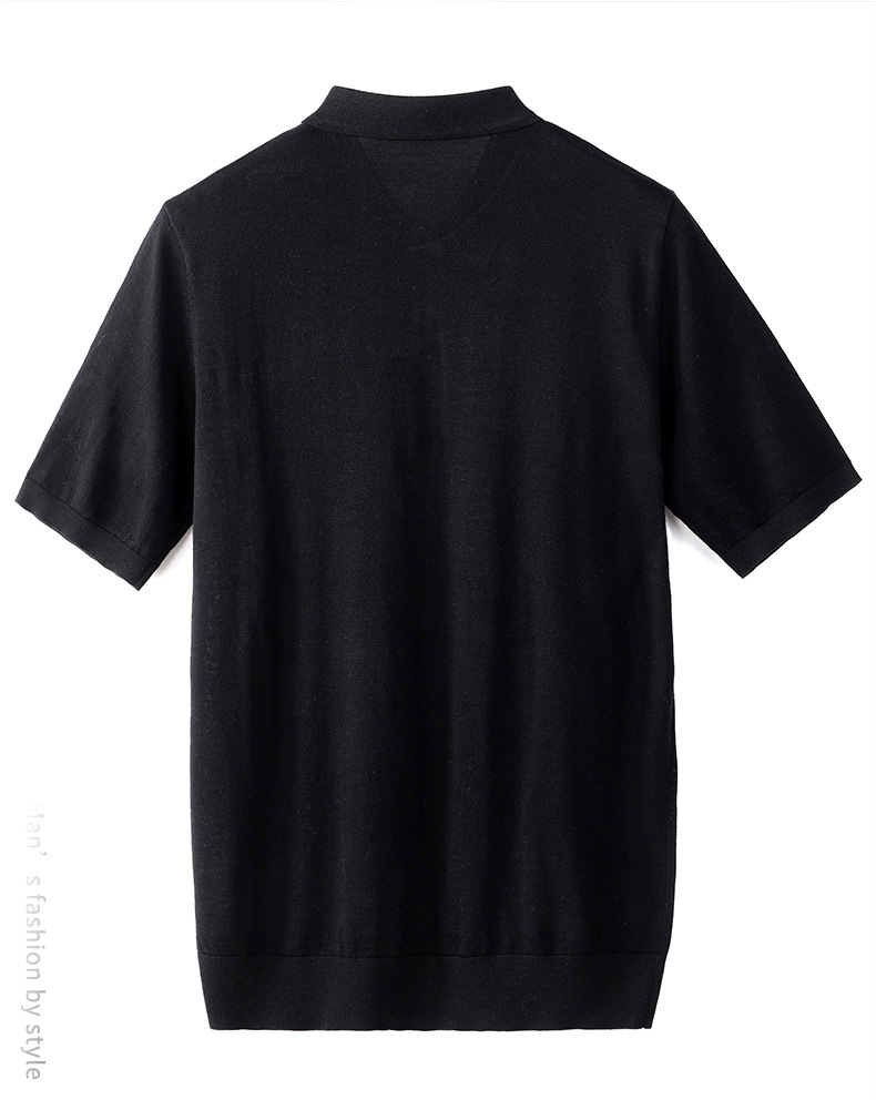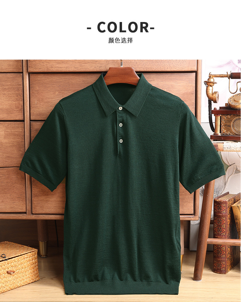 중년 남성 비즈니스 통근용 반팔 라펠 울 셔츠 60수 고급 편직 티셔츠 솔리드 컬러 핏 좋은 푸위안 울