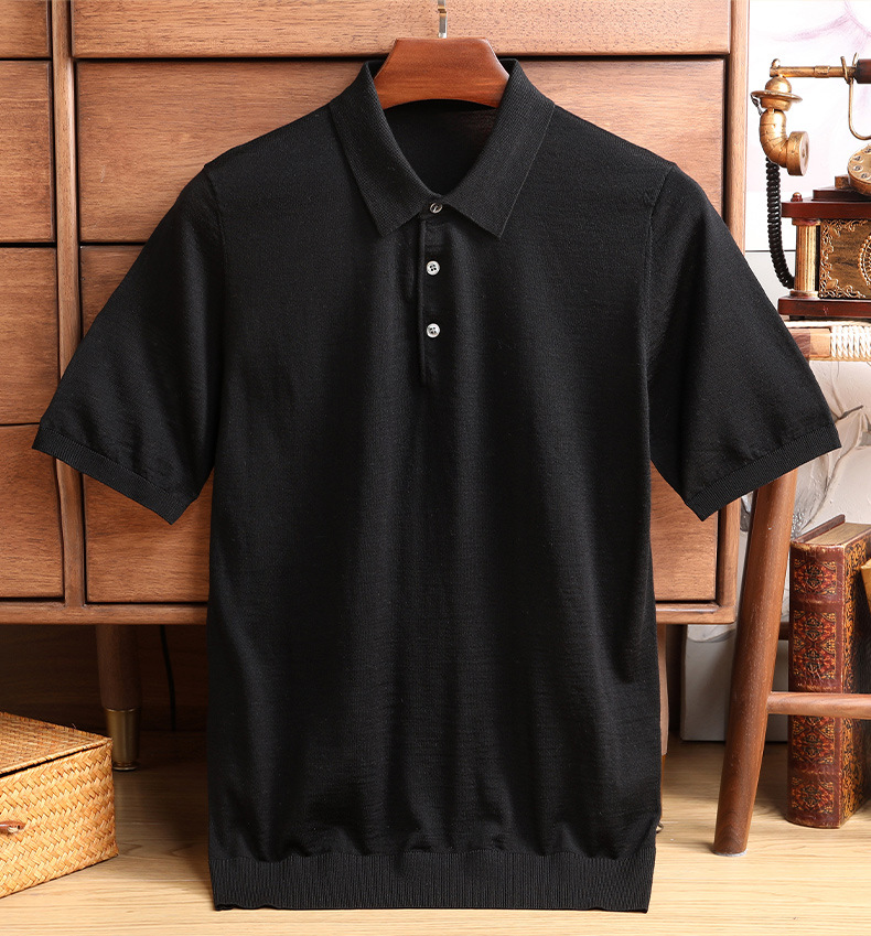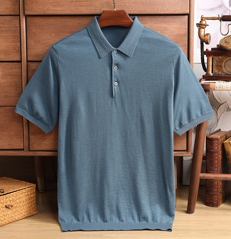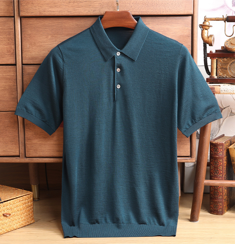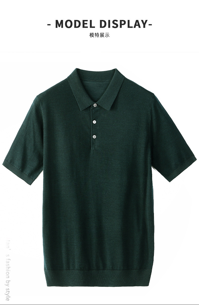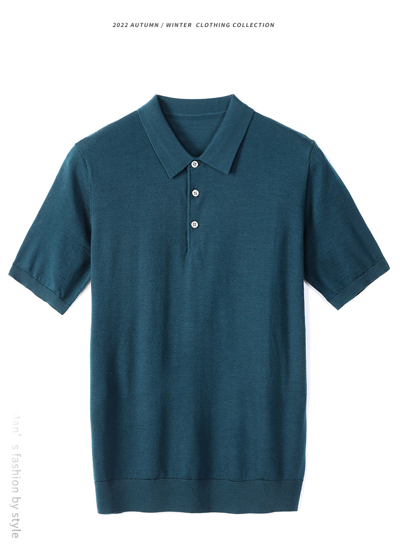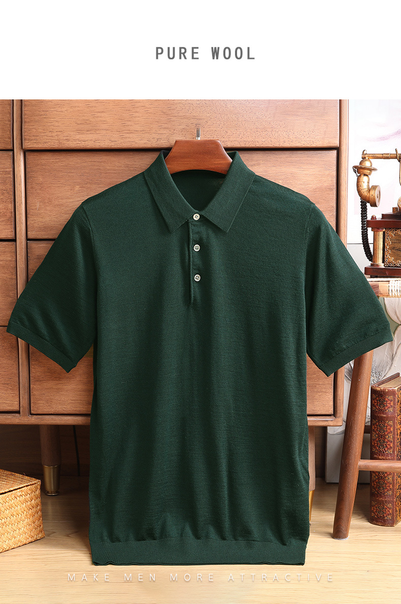 중년 남성 비즈니스 통근용 반팔 라펠 울 셔츠 60수 고급 편직 티셔츠 솔리드 컬러 핏 좋은 푸위안 울스토어 가기