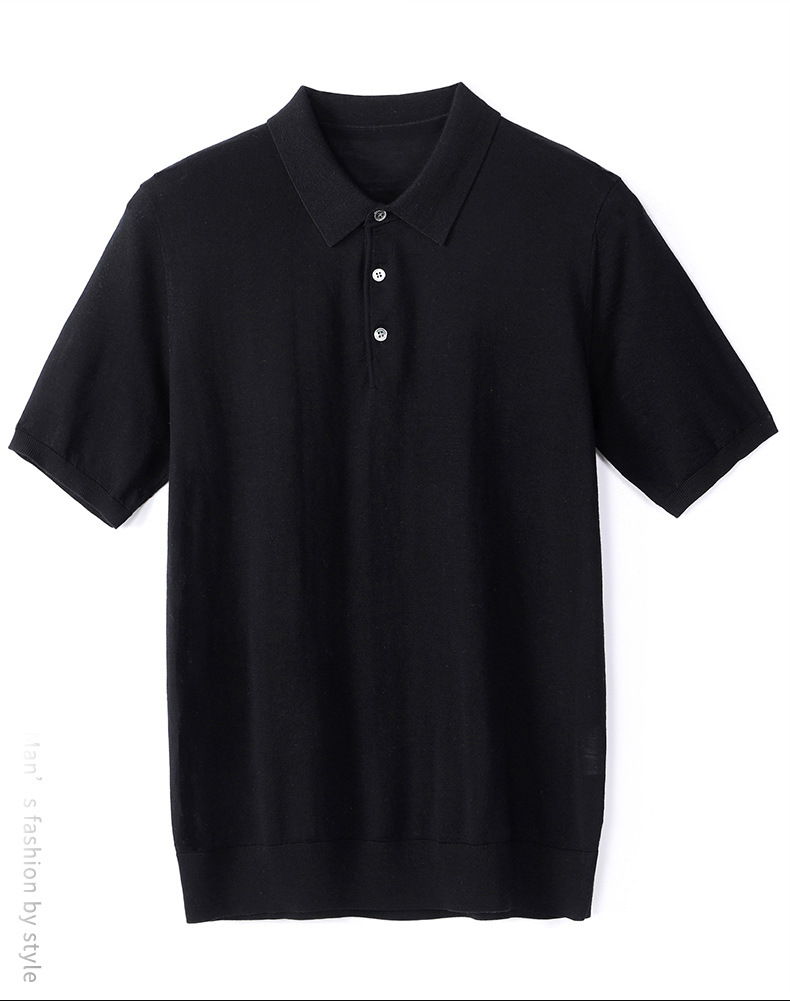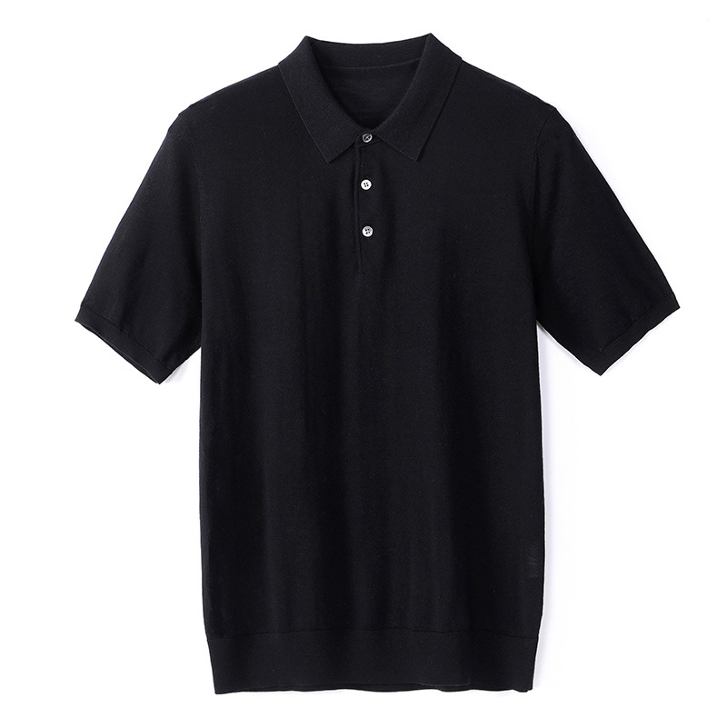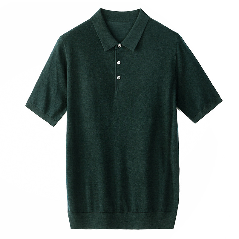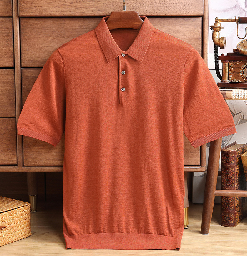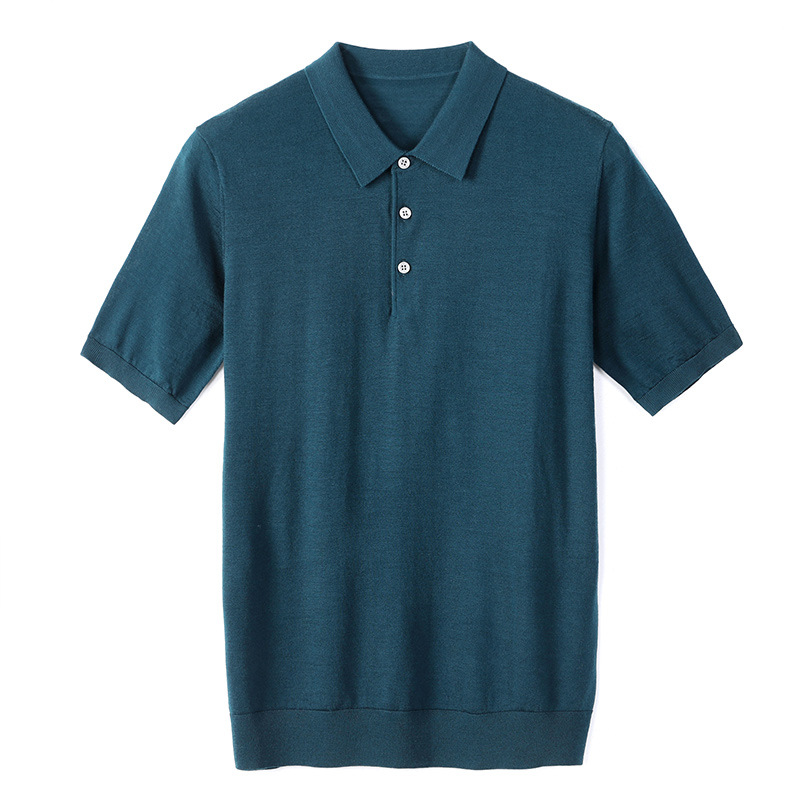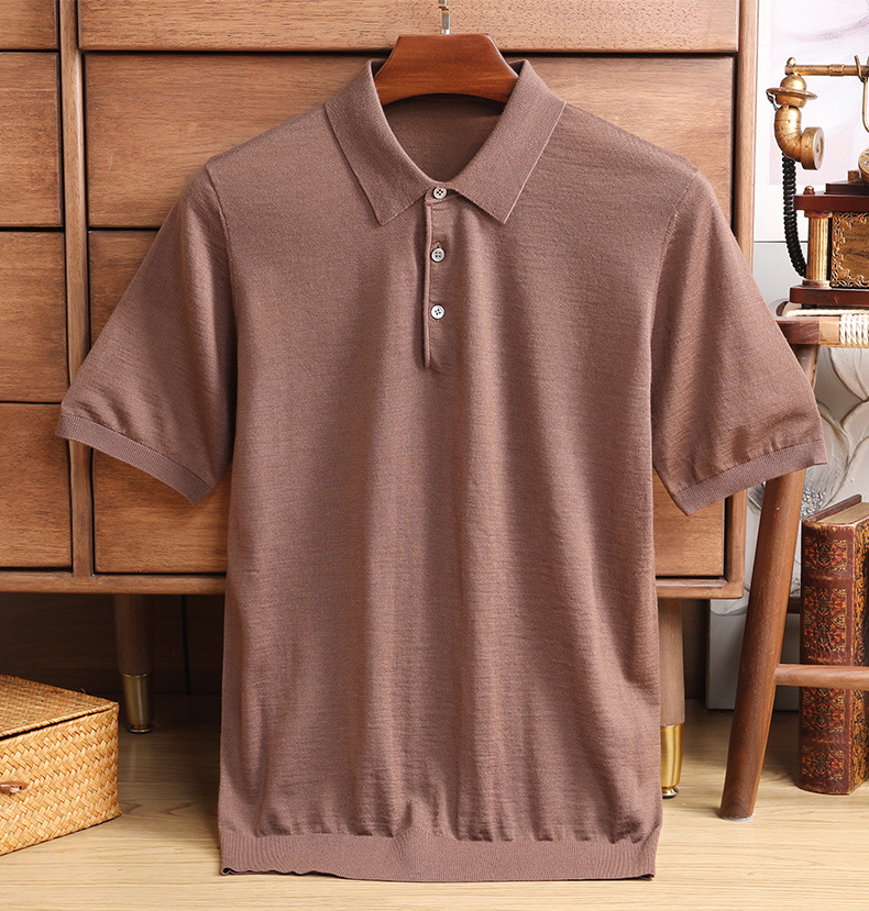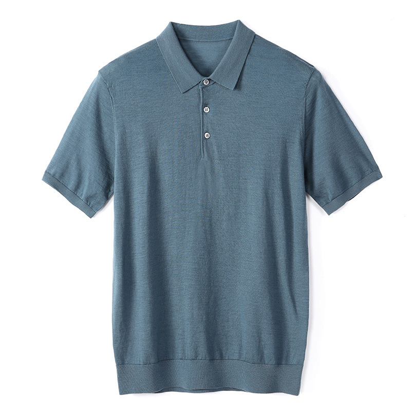 중년 남성 비즈니스 통근용 반팔 라펠 울 셔츠 60수 고급 편직 티셔츠 솔리드 컬러 핏 좋은 푸위안 울스토어 가기