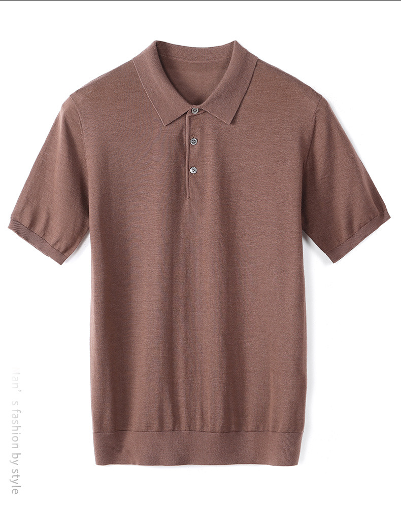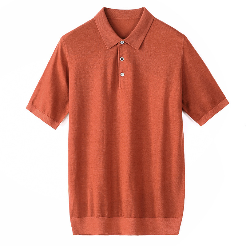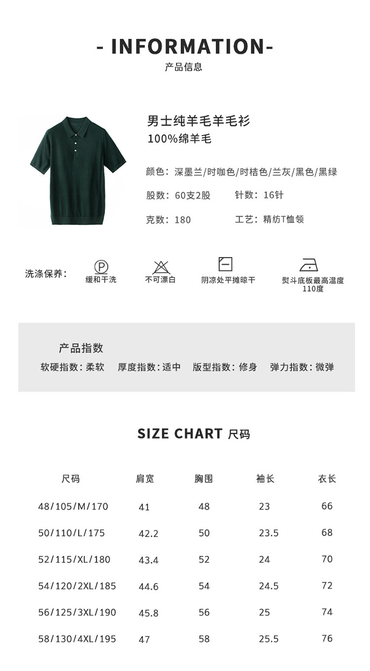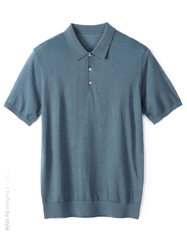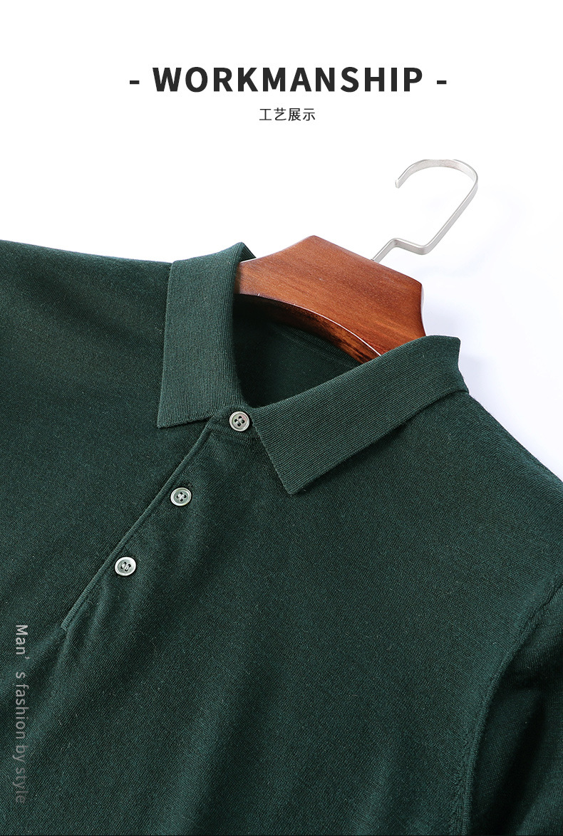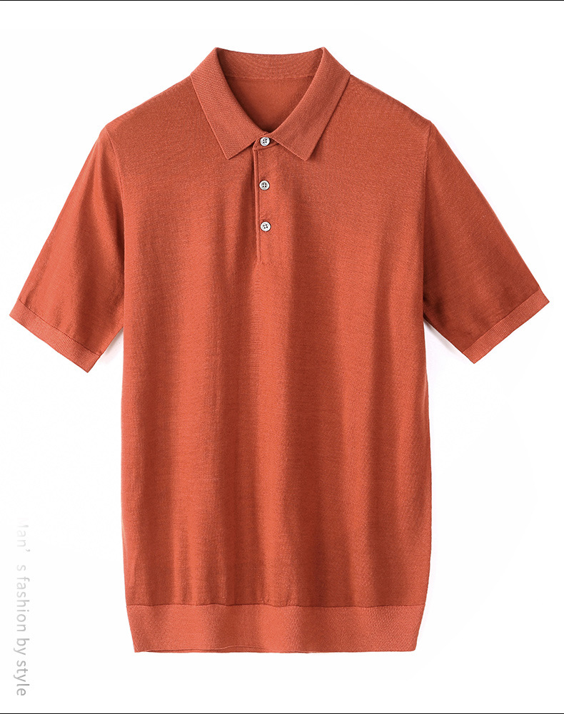 중년 남성 비즈니스 통근용 반팔 라펠 울 셔츠 60수 고급 편직 티셔츠 솔리드 컬러 핏 좋은 푸위안 울스토어 가기