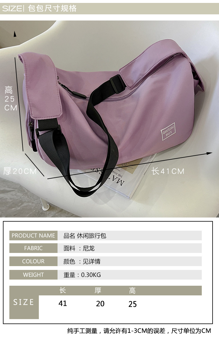 여성을위한 패션 캐주얼 나일론 피트니스 가방 단거리 출장 스포츠 보관 가방 대용량 원 숄더 크로스 바디 여행 가방
