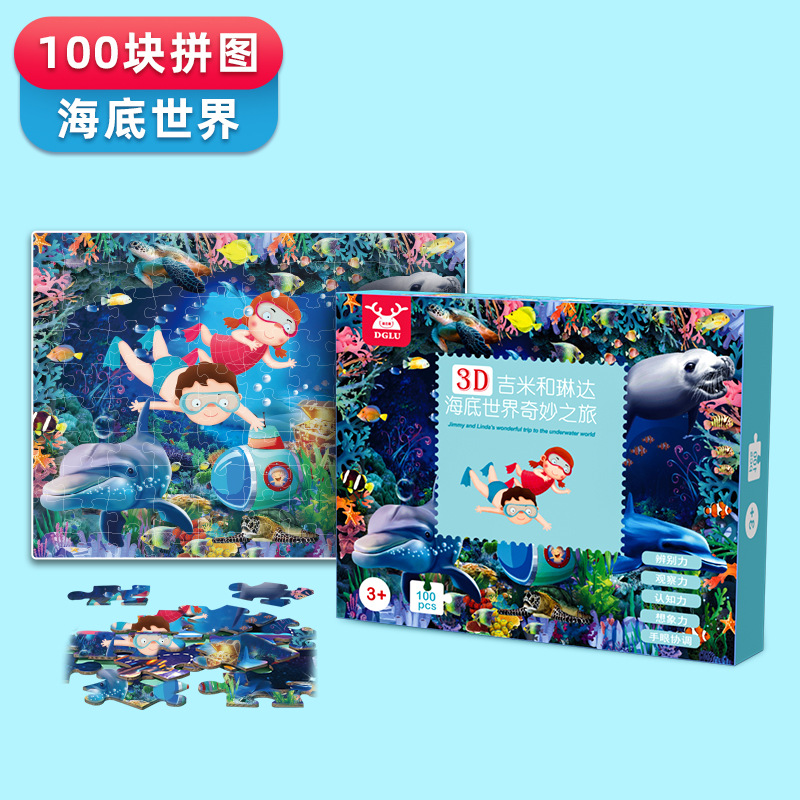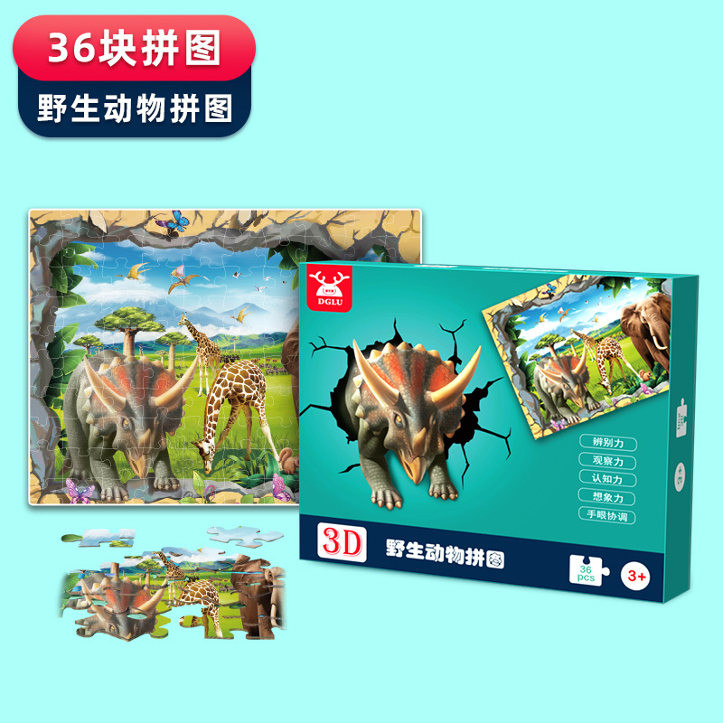 어린이 퍼즐 3-6 세 100 조각 3D 공룡 퍼즐 교육 조기 교육 장난감 6-12 세 아기 퍼즐 선물 상자