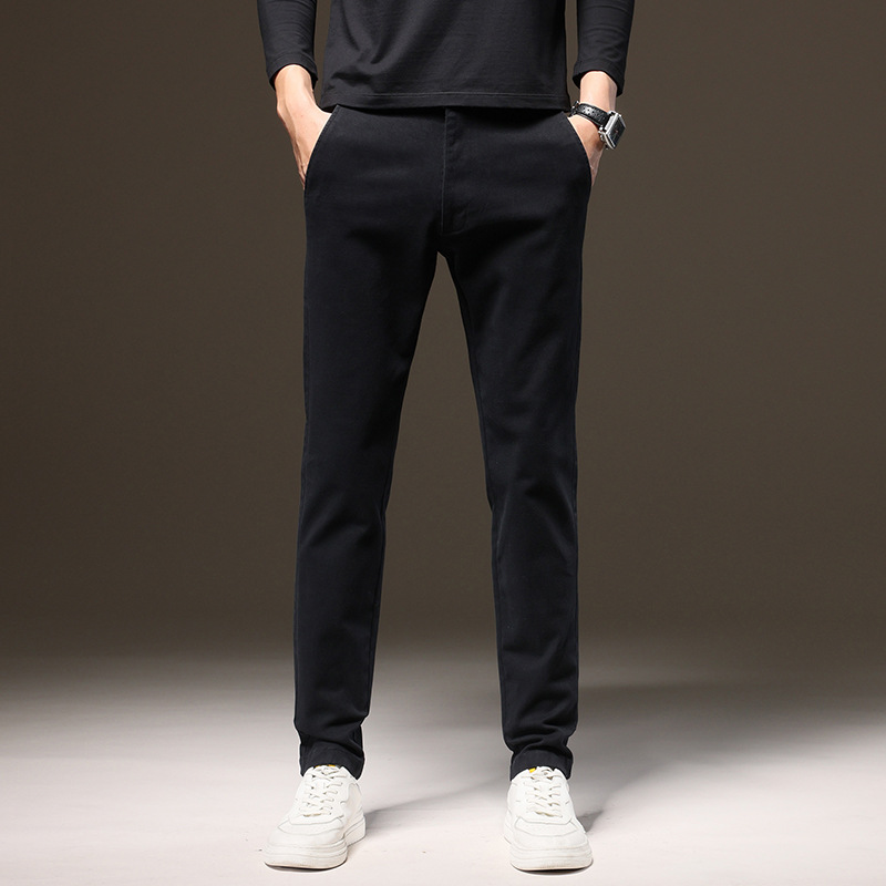 봄과 가을 면화 남성용 바지 심플 스타일 2024 편안한 올매치 비즈니스 바지 남성용 고급 스트레이트 가죽 캐주얼 바지
