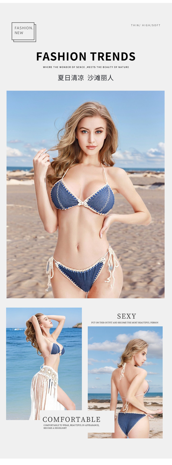 여성용 여름 유럽 및 미국 스타일 섹시 비키니 세트, 등이 노출된 해변 수영복스토어 가기
