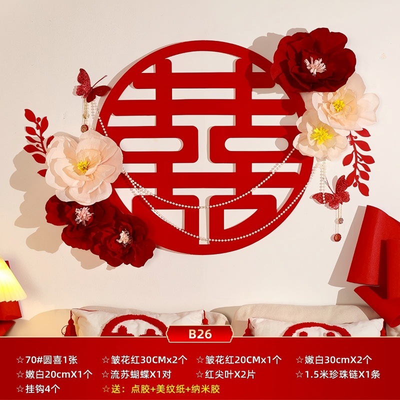 웨딩 배열 거실 배경 벽 간단한 웨딩 룸 장식 웨딩 만화 행복한 캐릭터 꽃 스타일 웨딩 용품스토어 가기
