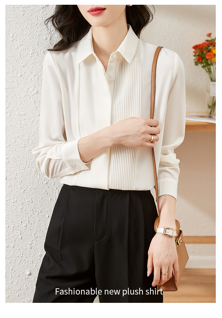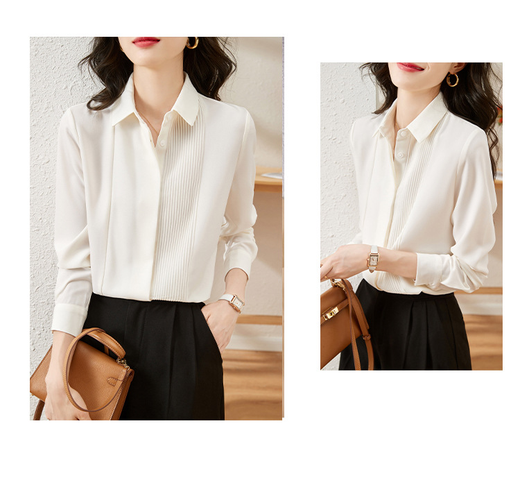 공장 직접 판매 오르간 플리츠 쉬폰 셔츠 여성 긴팔 2025 가을 새로운 디자인 기질 탑 바닥 셔츠스토어 가기