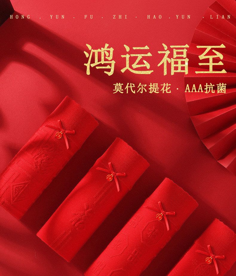브닝 니언 빅 레드 속옷 여성용 퓨어 코튼 크로트 안티 박테리아 트리스 하이 허리 토끼 드래곤 웨딩 코튼 브리프