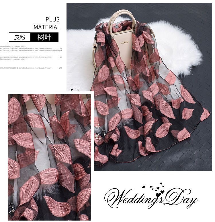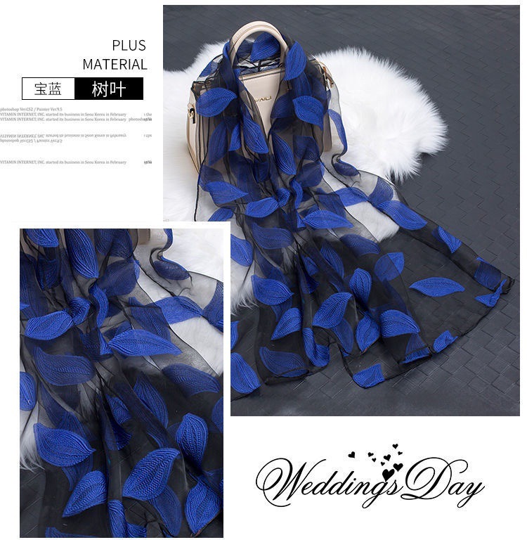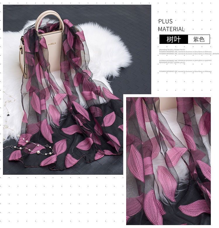 새로운 오간자 스카프 롱 한국판 올 매치 목도리 스카프 잎 컷 꽃 스카프 선 스크린 스카프 도매스토어 가기