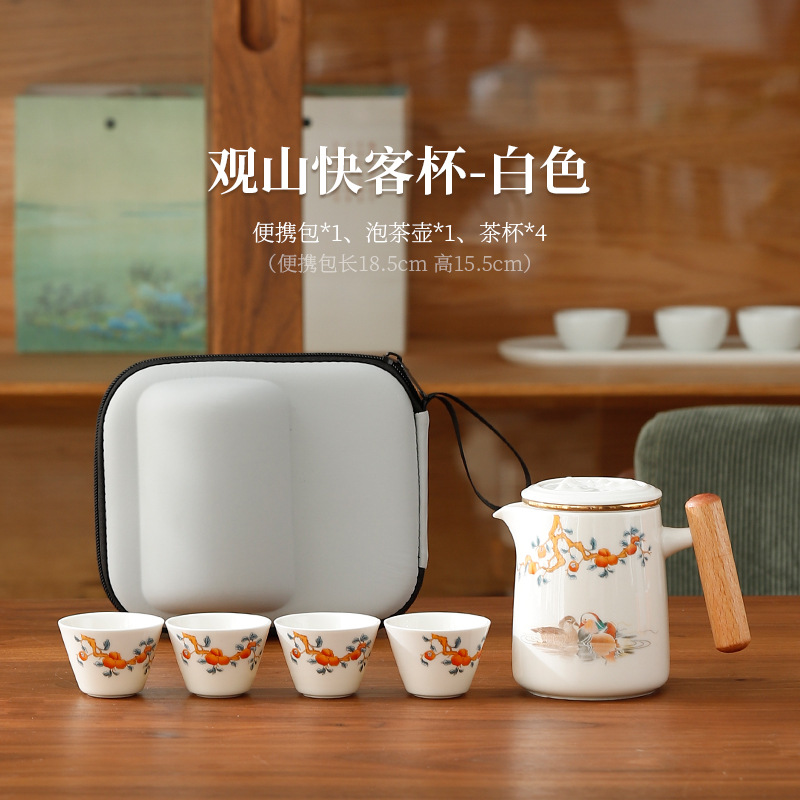 손으로 그린 여행 차 세트 세트 휴대용 쿵푸 차 컵 1 냄비 3 컵 간단한 야외 세라믹 익스프레스 컵스토어 가기