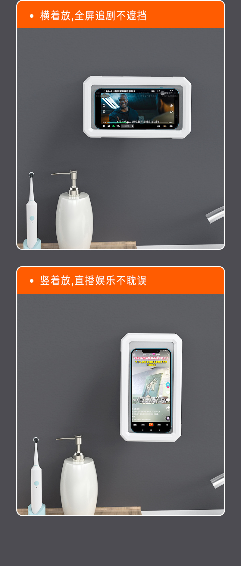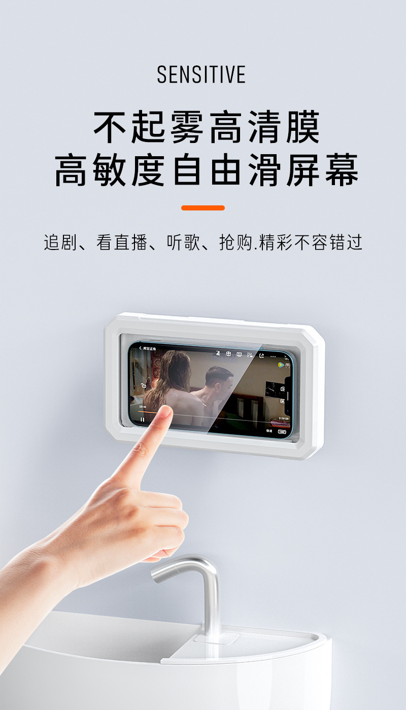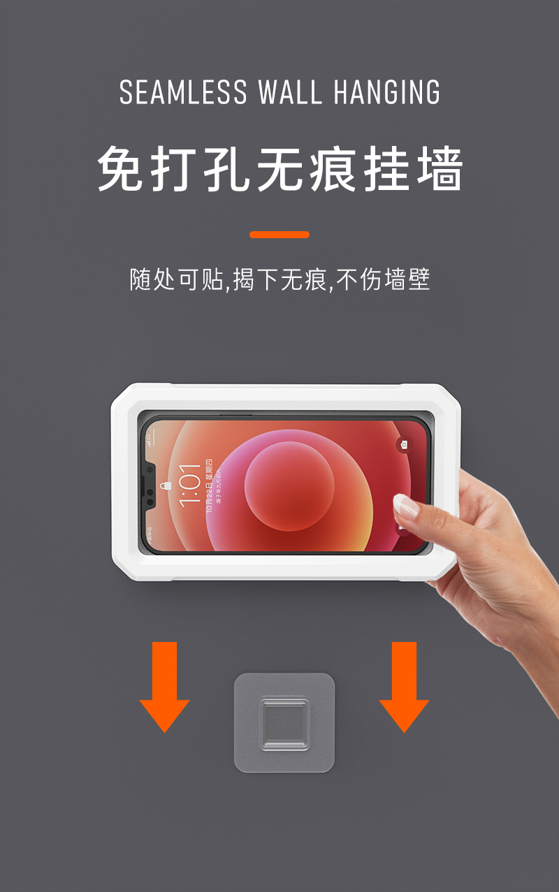 욕실 방수 휴대 전화 상자 펀치 프리 접이식 회전 조정 방수 휴대 전화 브래킷 김서림 방지 터치 스크린 벽 스티커