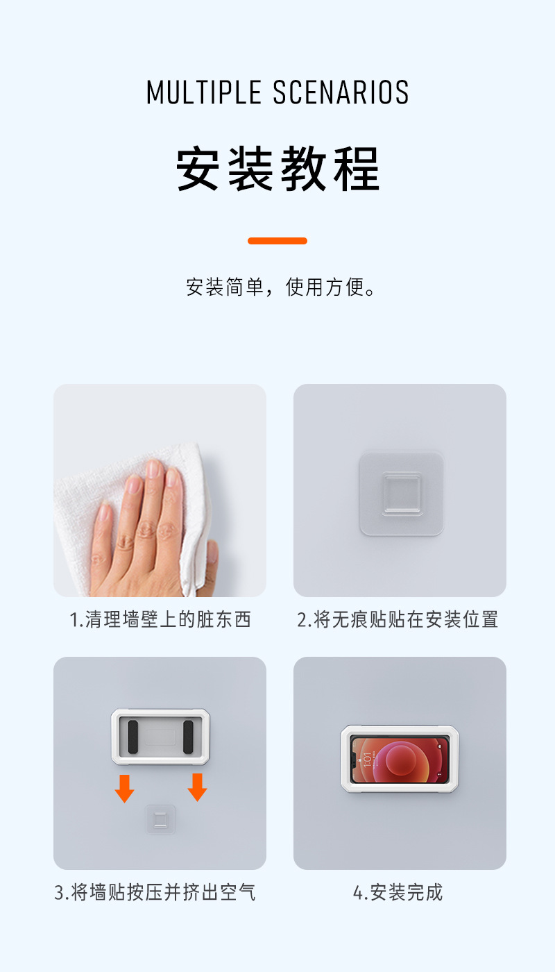 2.多功能支架:墙壁支架/桌面支架,可承重300g