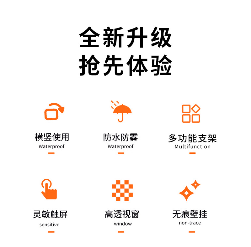 욕실 방수 휴대 전화 상자 펀치 프리 접이식 회전 조정 방수 휴대 전화 브래킷 김서림 방지 터치 스크린 벽 스티커스토어 가기
