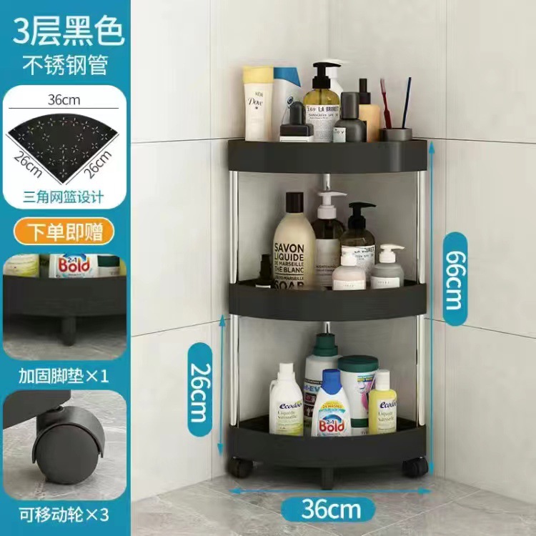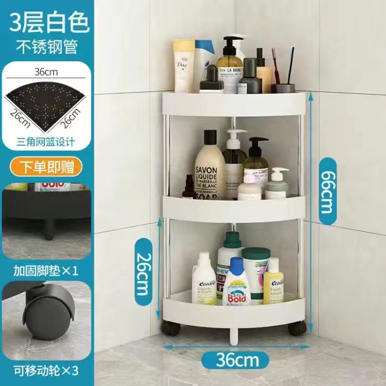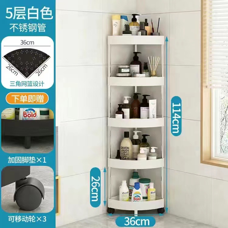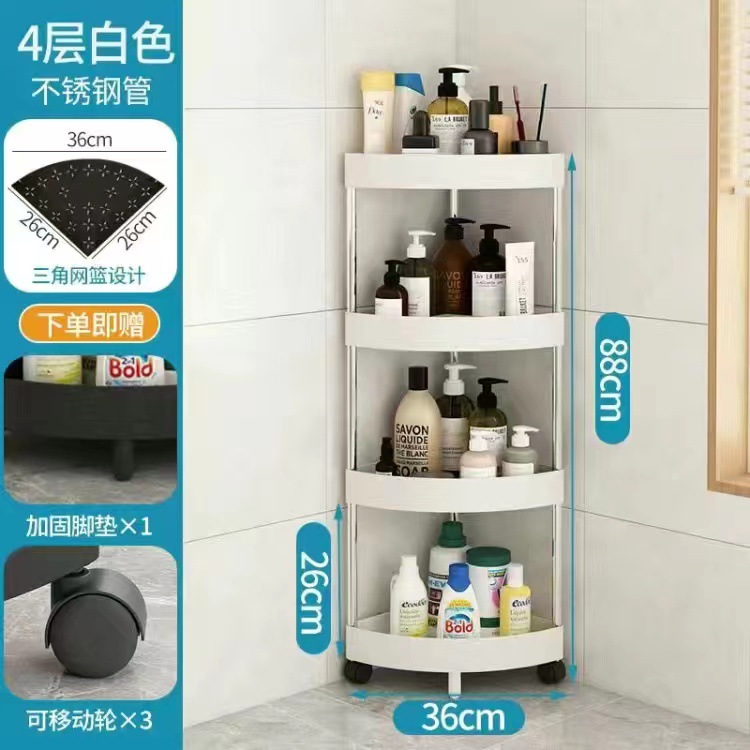 구멍없는 코너 스토리지 랙 욕실 욕실 스토리지 랙 바닥 스탠딩 가정용 삼각대 다층 스토리지 랙