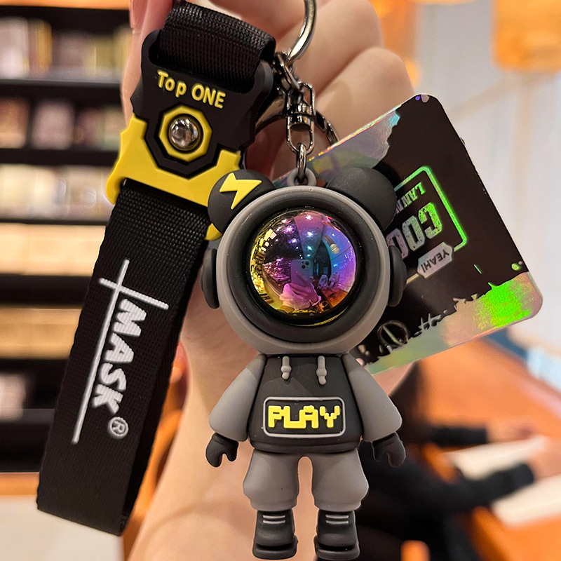 정품 번개 곰 열쇠 고리 우주 비행사 부드러운 고무 인형 열쇠 고리 가방 펜던트 자동차 키 펜던트